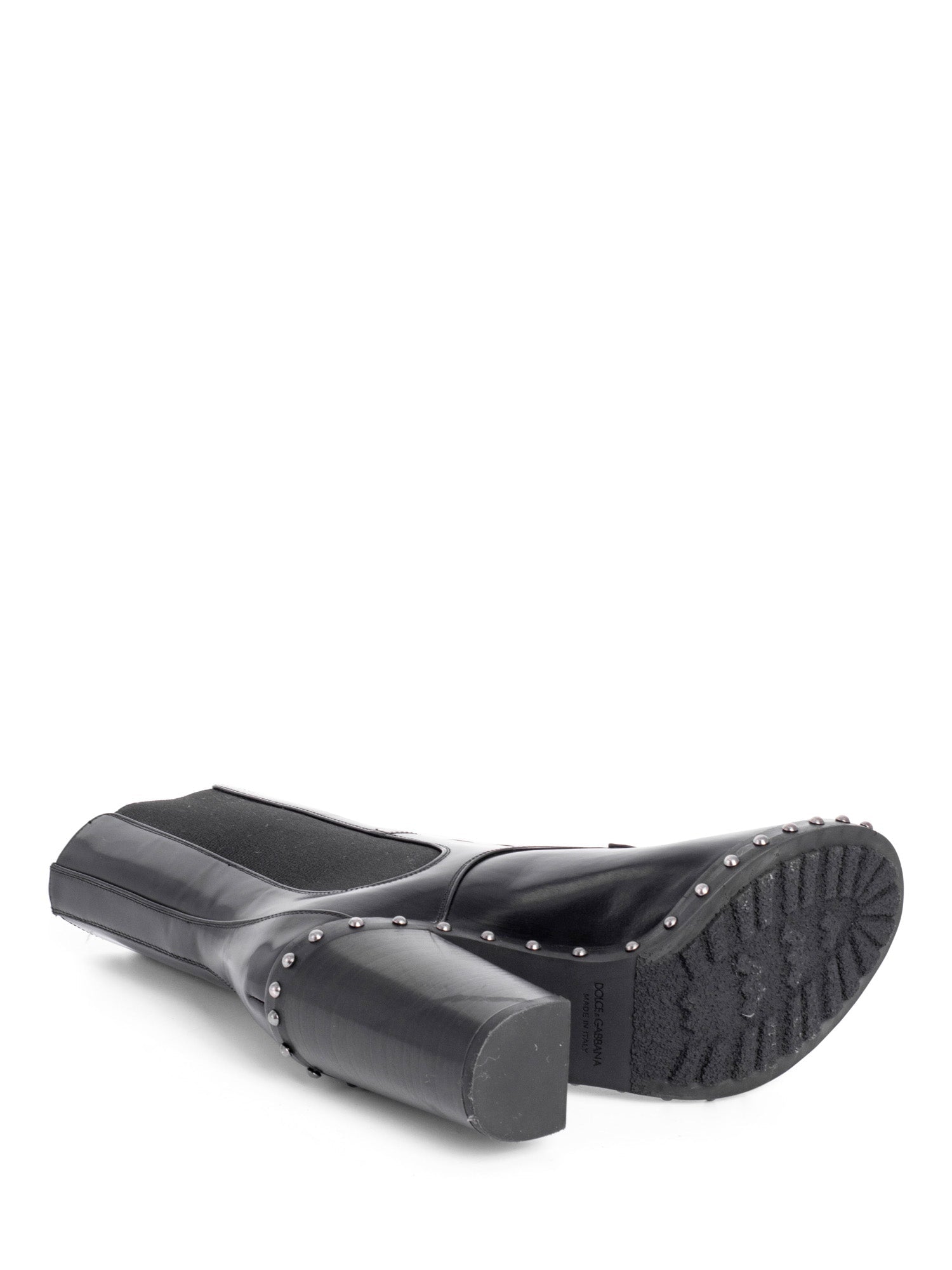 Dolce and Gabbana Studded Sole Ankle Boots or . These Chelsea style ankle boots are in black leather and feature a studded sole design with built-in laces.