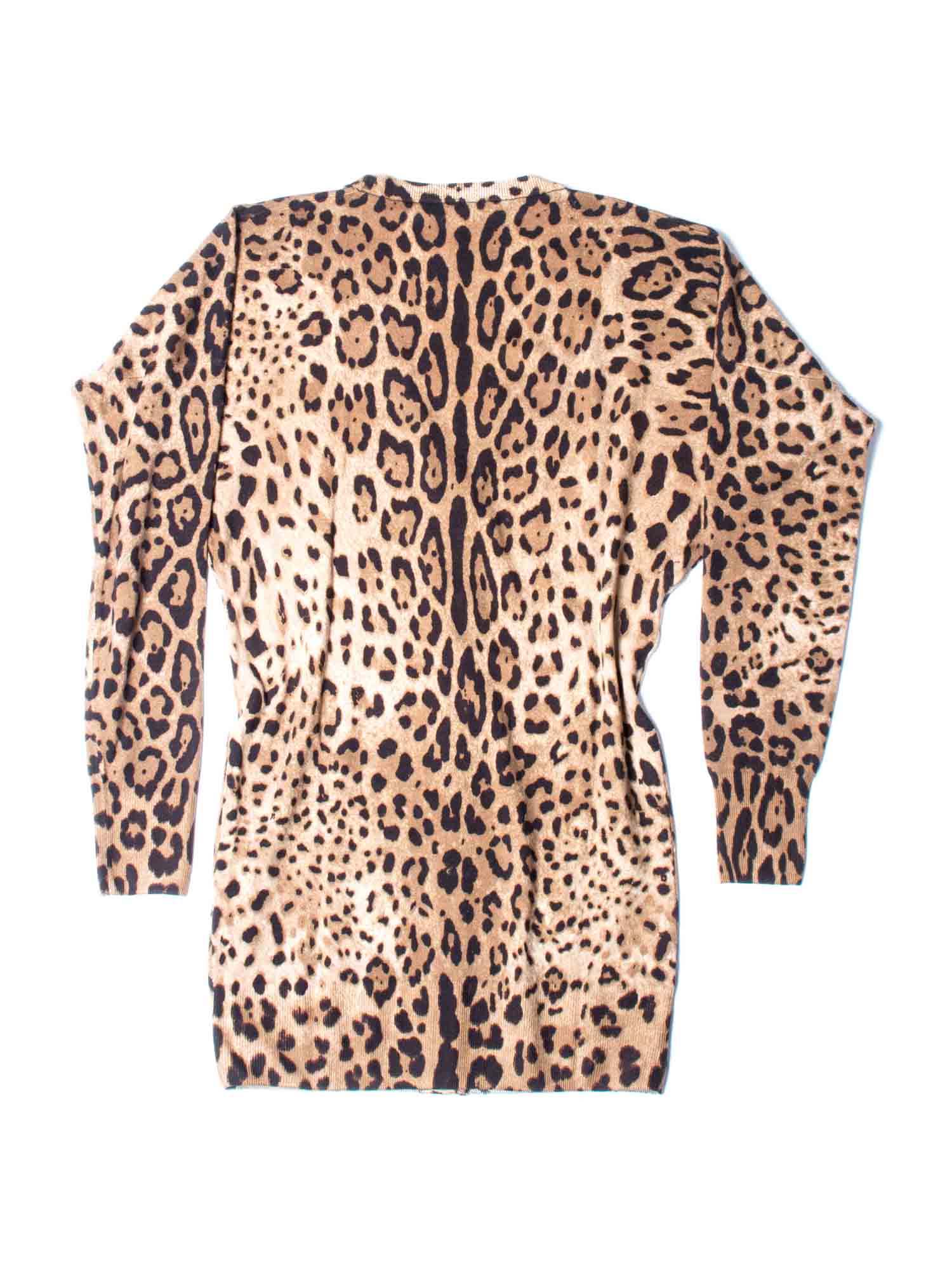Dolce & Gabbana Two Piece Set or . The two piece set features a matching cardigan and top. They are in a wool fabric, featuring an animal print design. The cardigan has a button front closure and the top is sleeveless with a scoop neck.