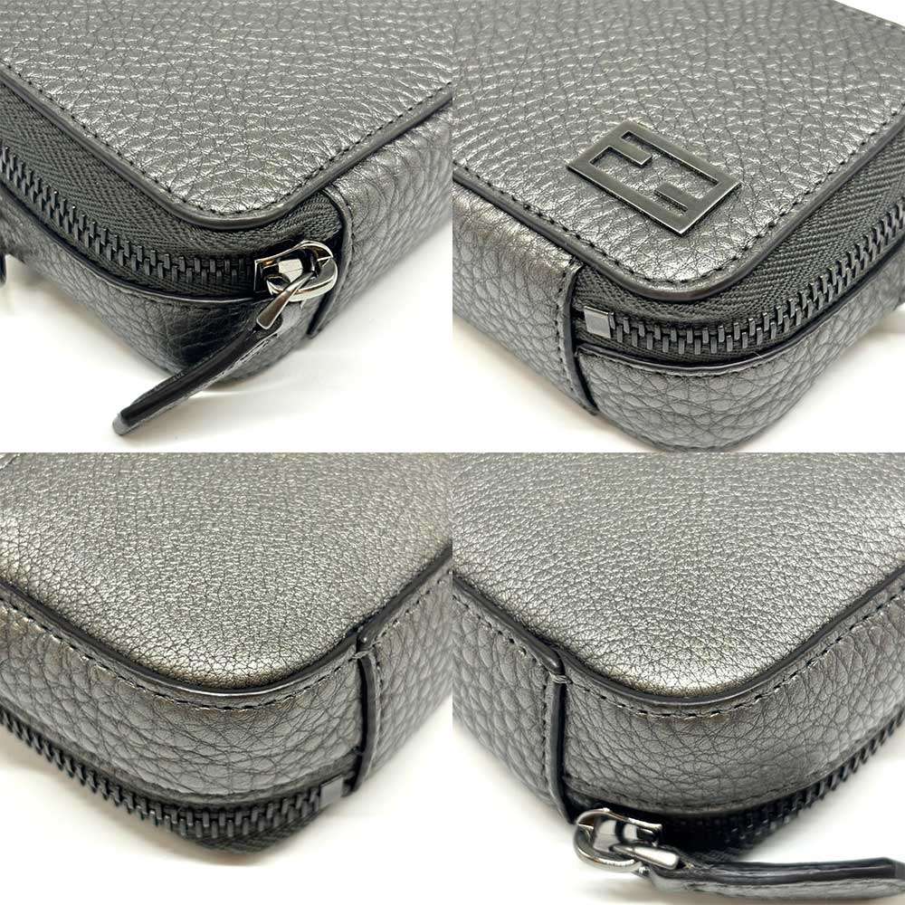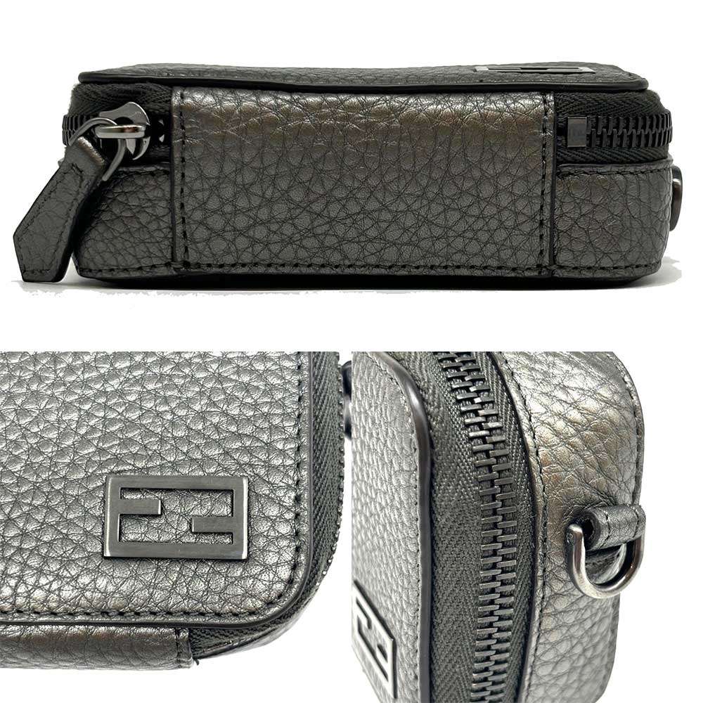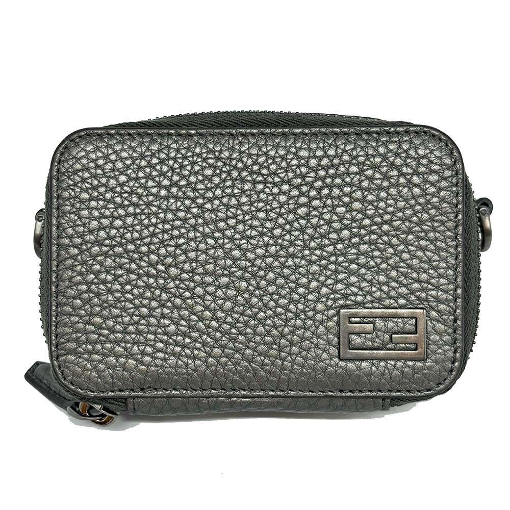 Item name : Fendi Leather Mini Crossbody Bag Metallic Gray