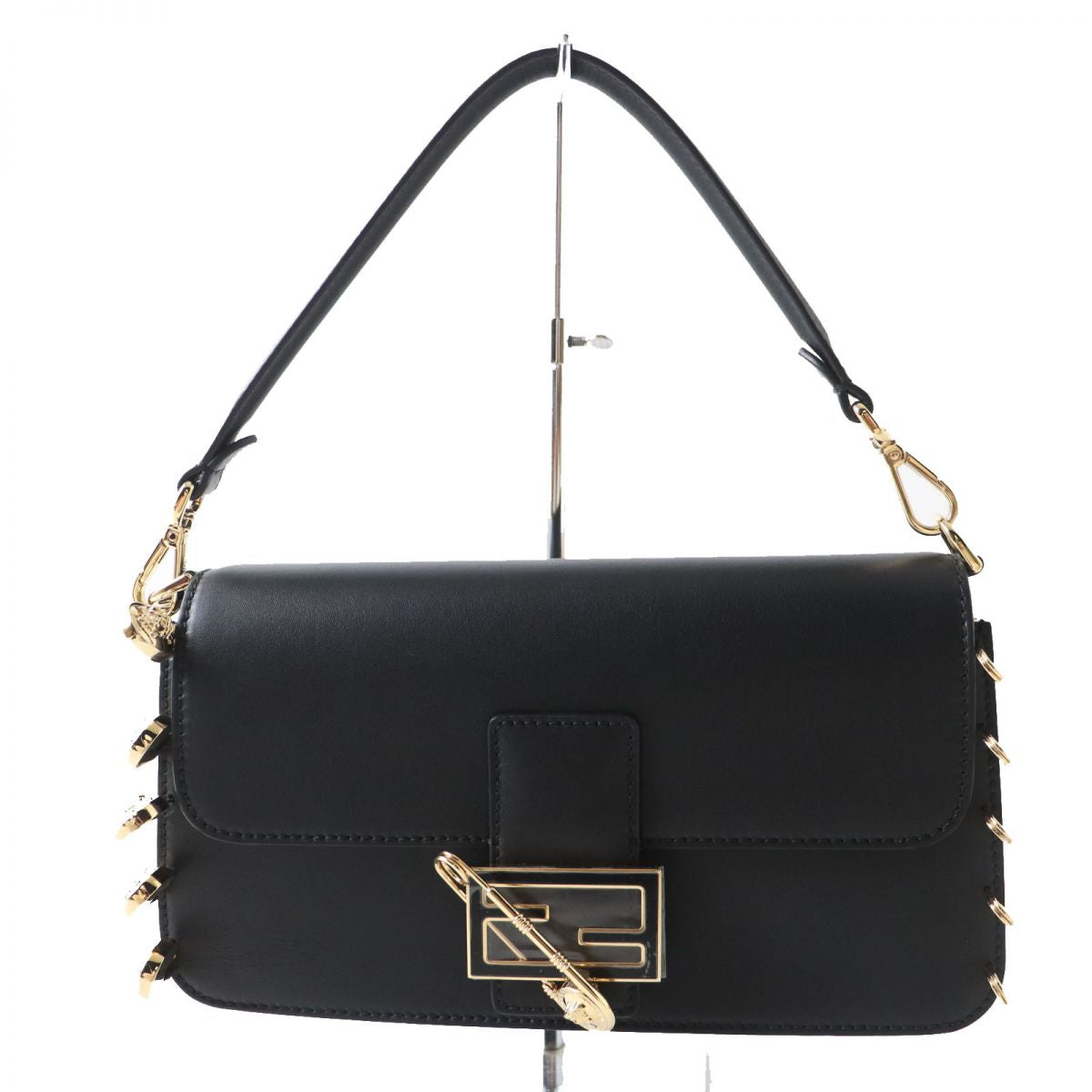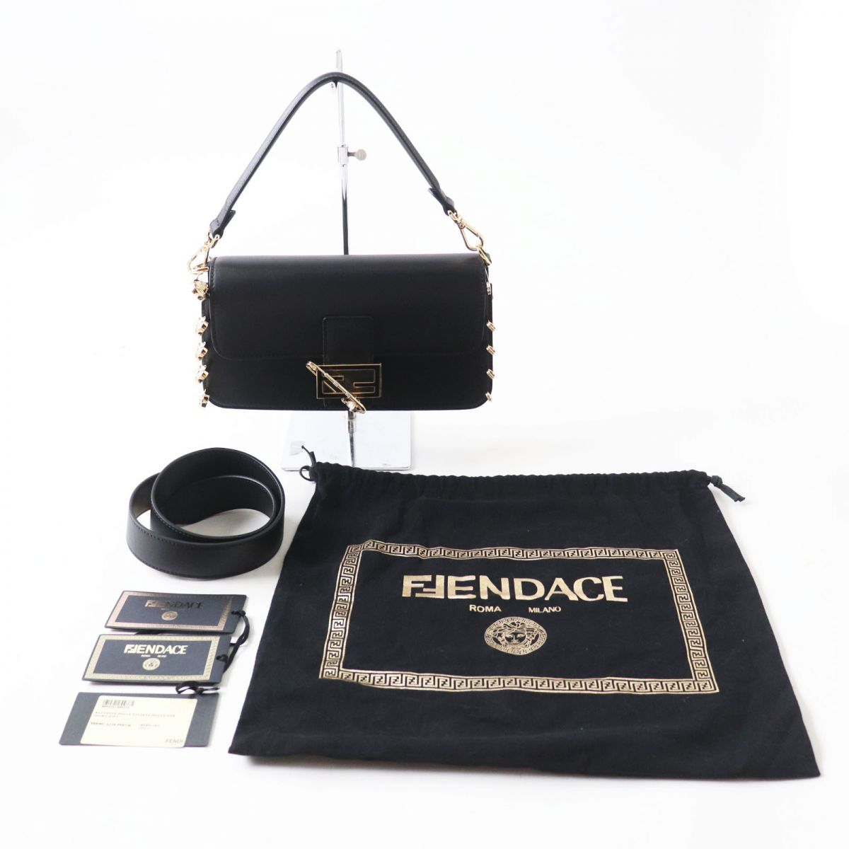Fendi Versace 2WAY Baguette Bag Black Gold