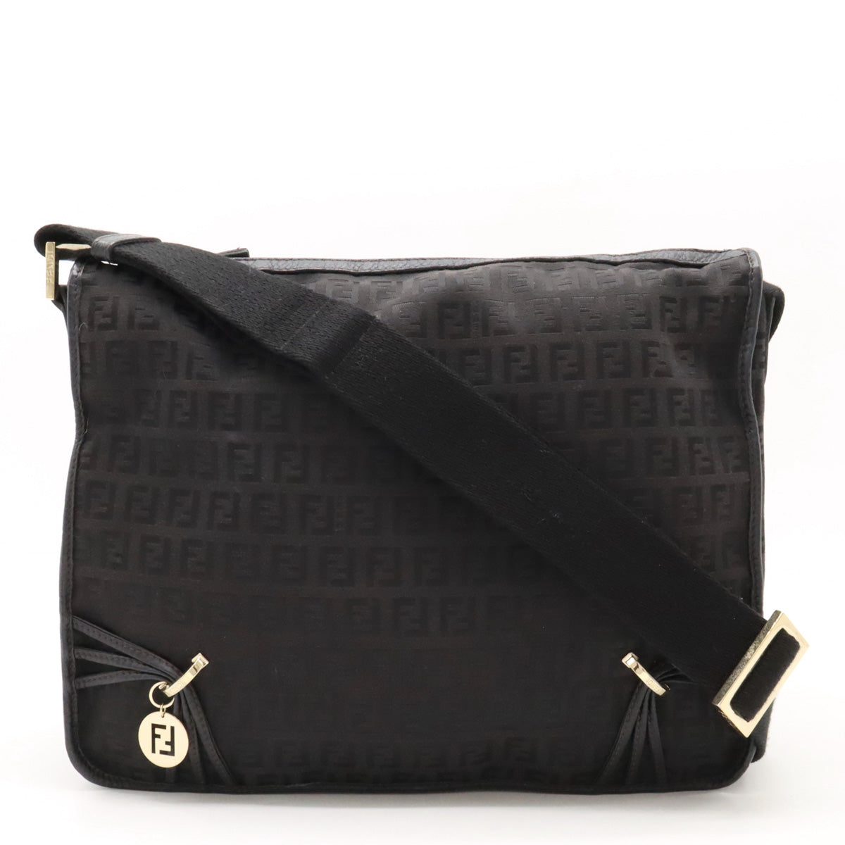 Item name : Fendi Zucchino Canvas Leather Shoulder Bag Black