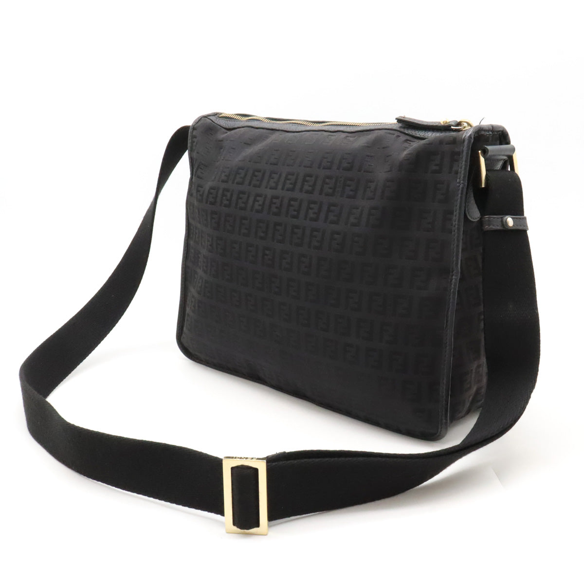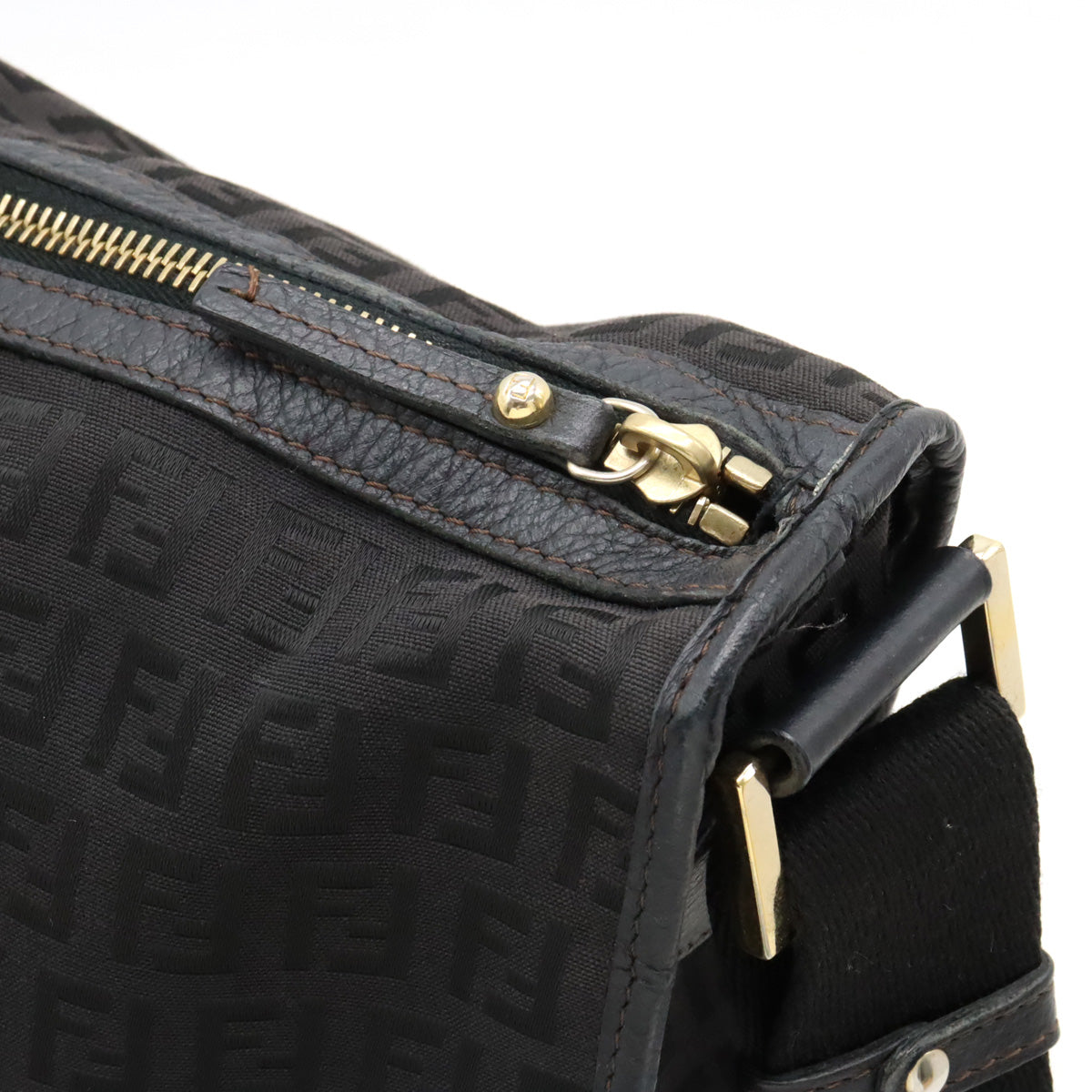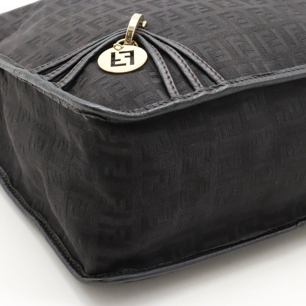 Fendi Zucchino Canvas Leather Shoulder Bag Black