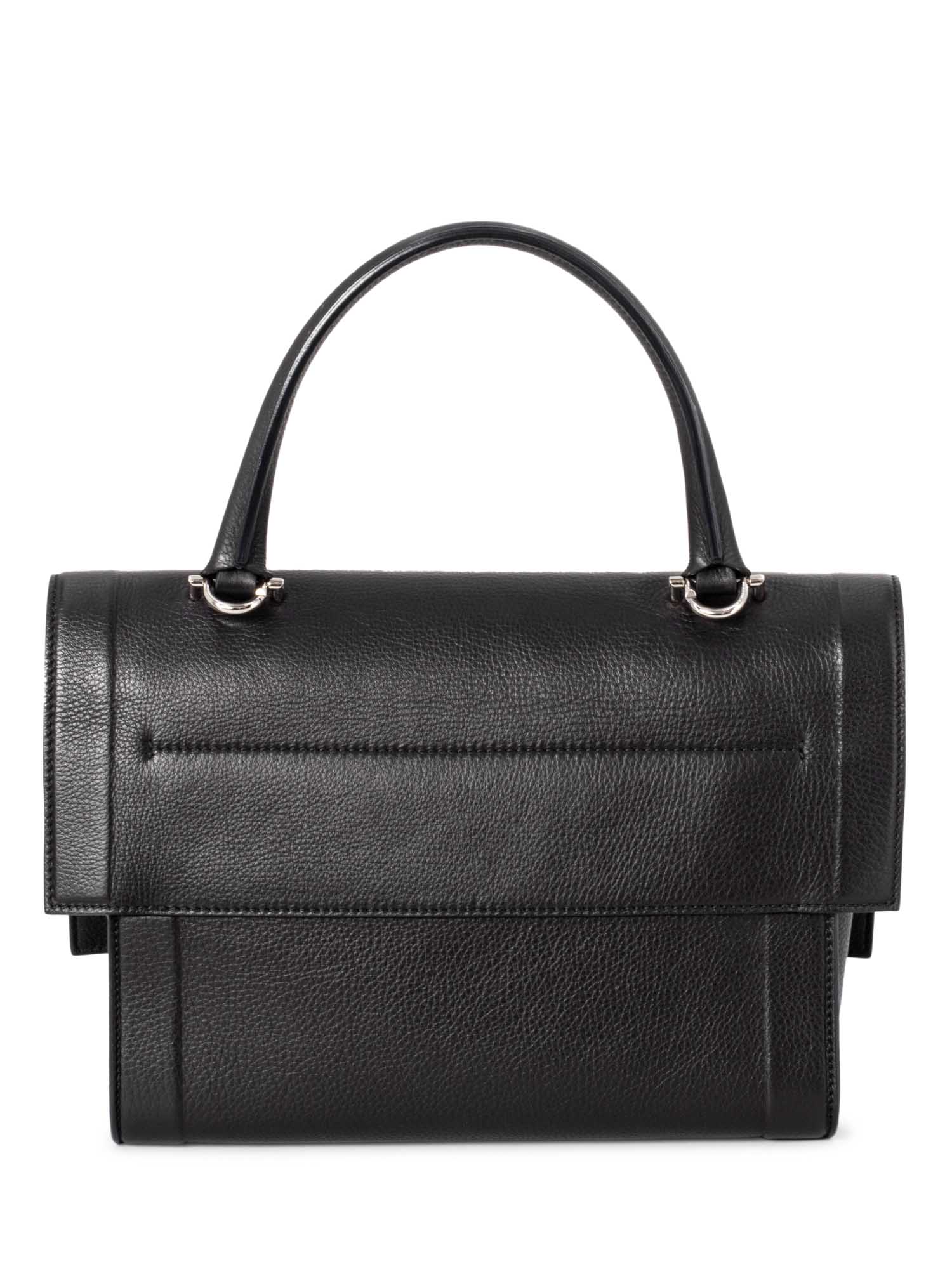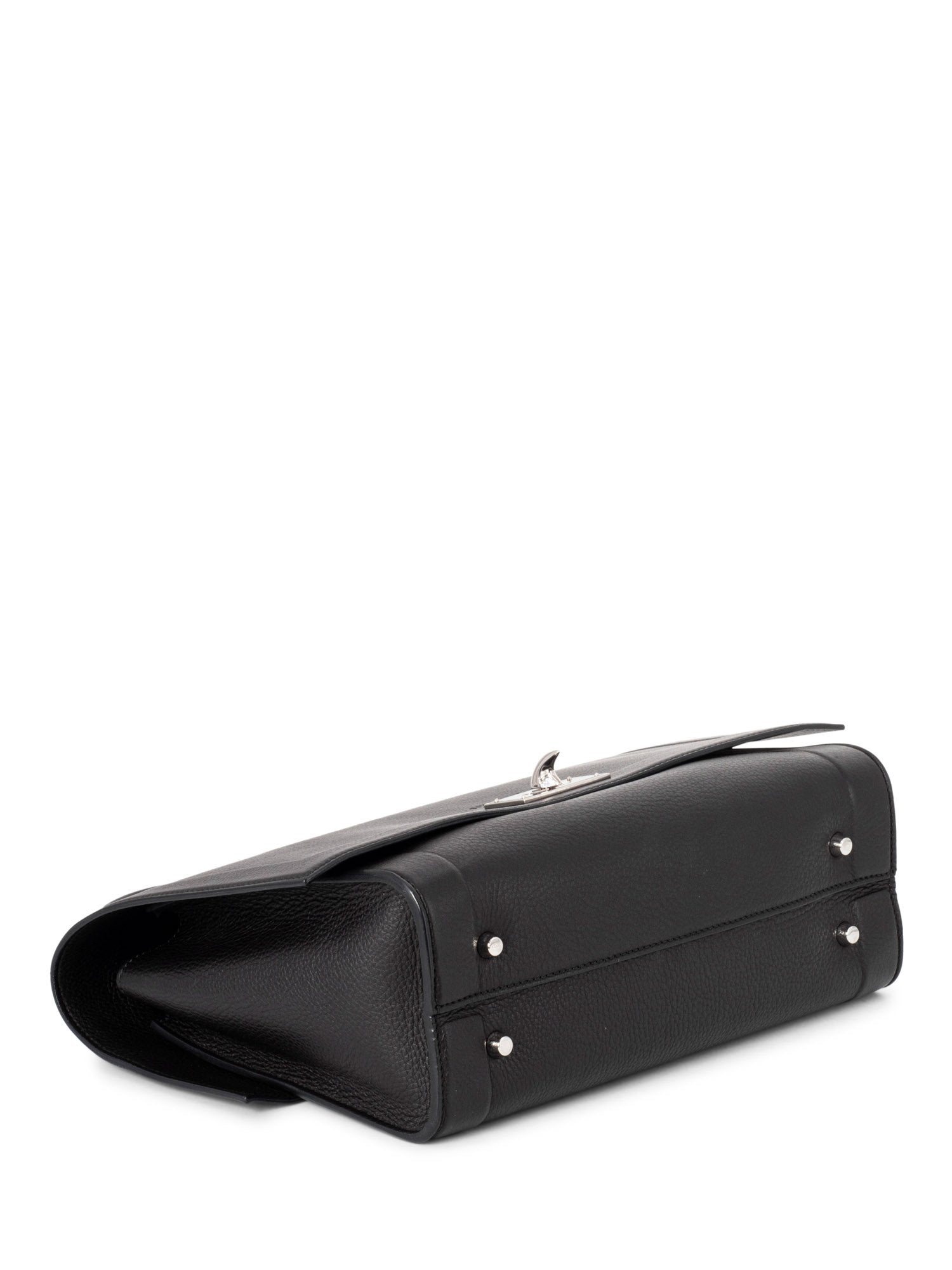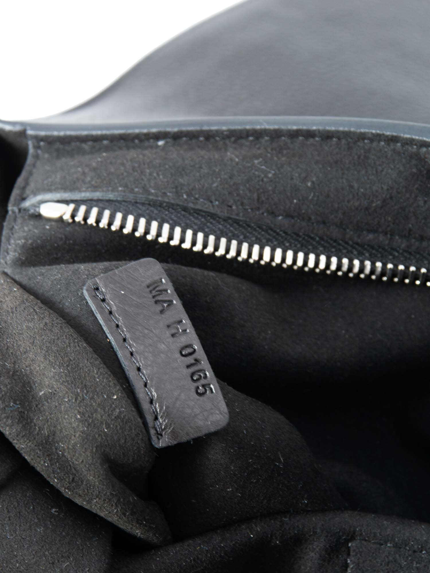 Givenchy Shark Satchel Bag or . This bag is in black calfskin leather with silver toned-hardware. It features rolled top leather handle with shark tooth shaped turn lock closure and removable crossbody strap. The interior is in smooth black suede with one zipper pocket.