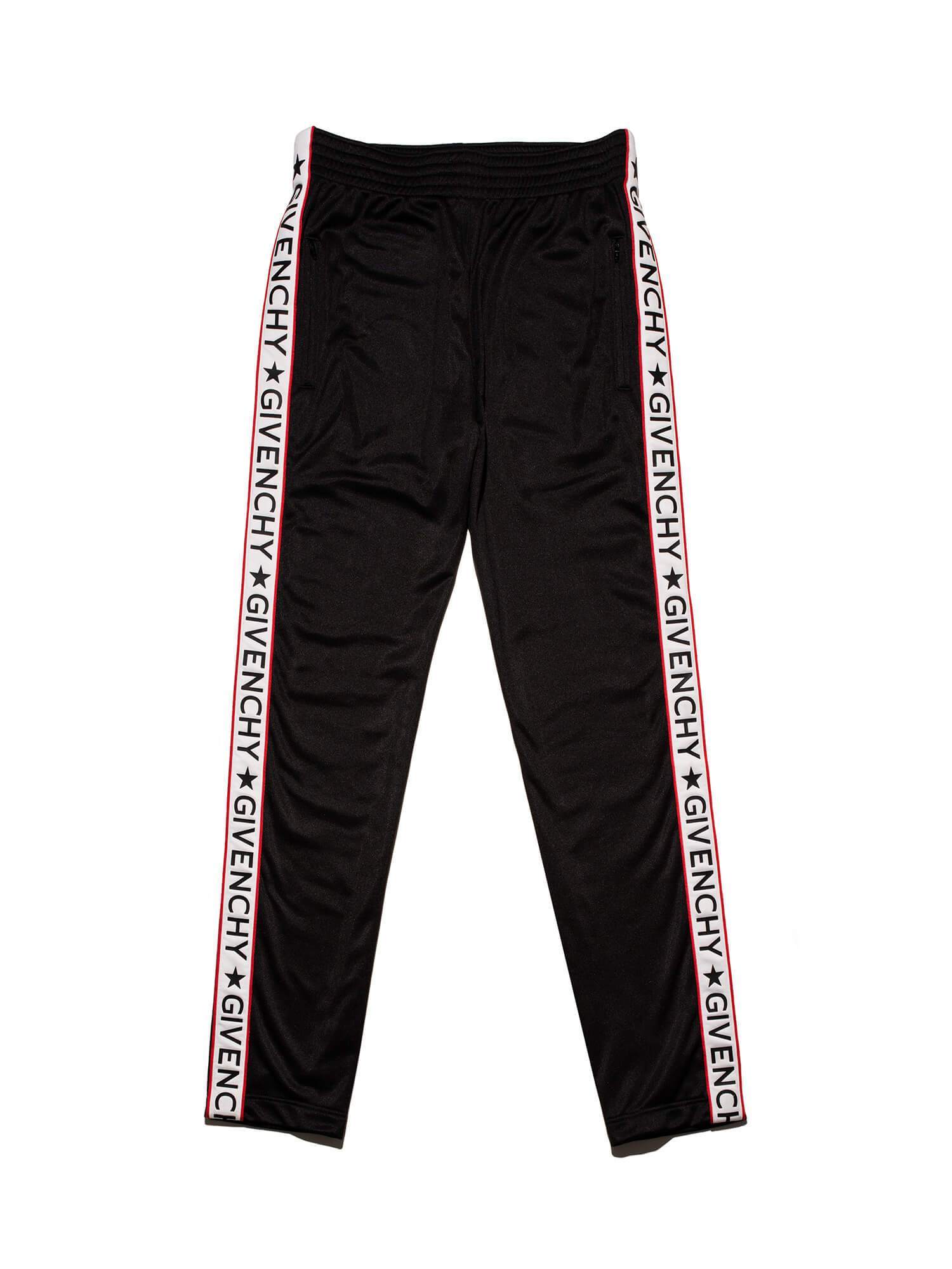 Givenchy Jersey Track Pants or . This street ready track pants are boldly designed with Givenchy logo-print and star motif tape on the side seams. An elasticated waistband complete this simplistic statement style. A street ready piece versatile enough for your downtime rotation.