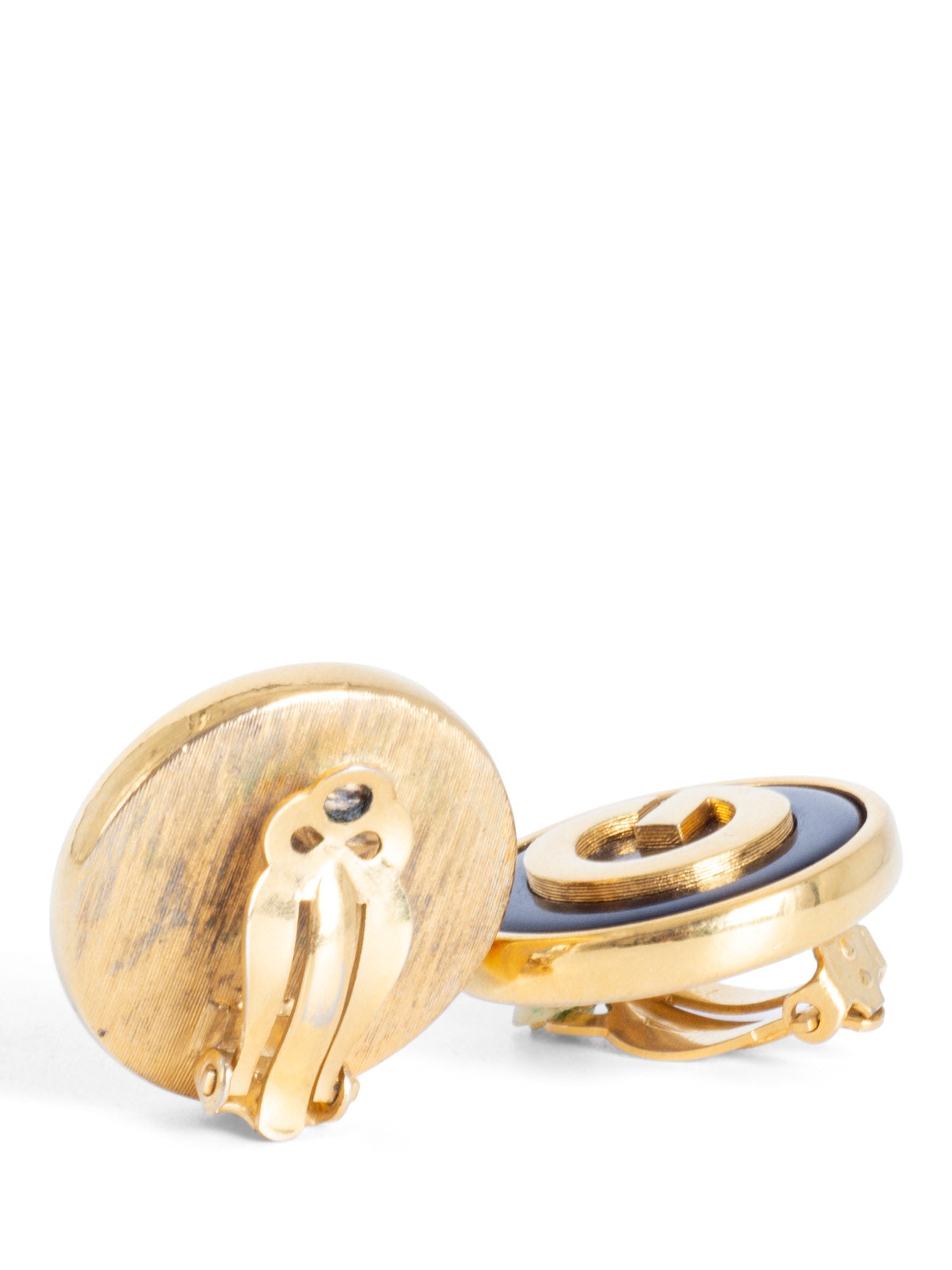 Givenchy G Clip On Earrings or . They feature a large 24k G logo and black enamel. The earrings are signed Givenchy. You can definitely picture Audrey Hepburn, who served as Givenchy's greatest muse, wearing this necklace!