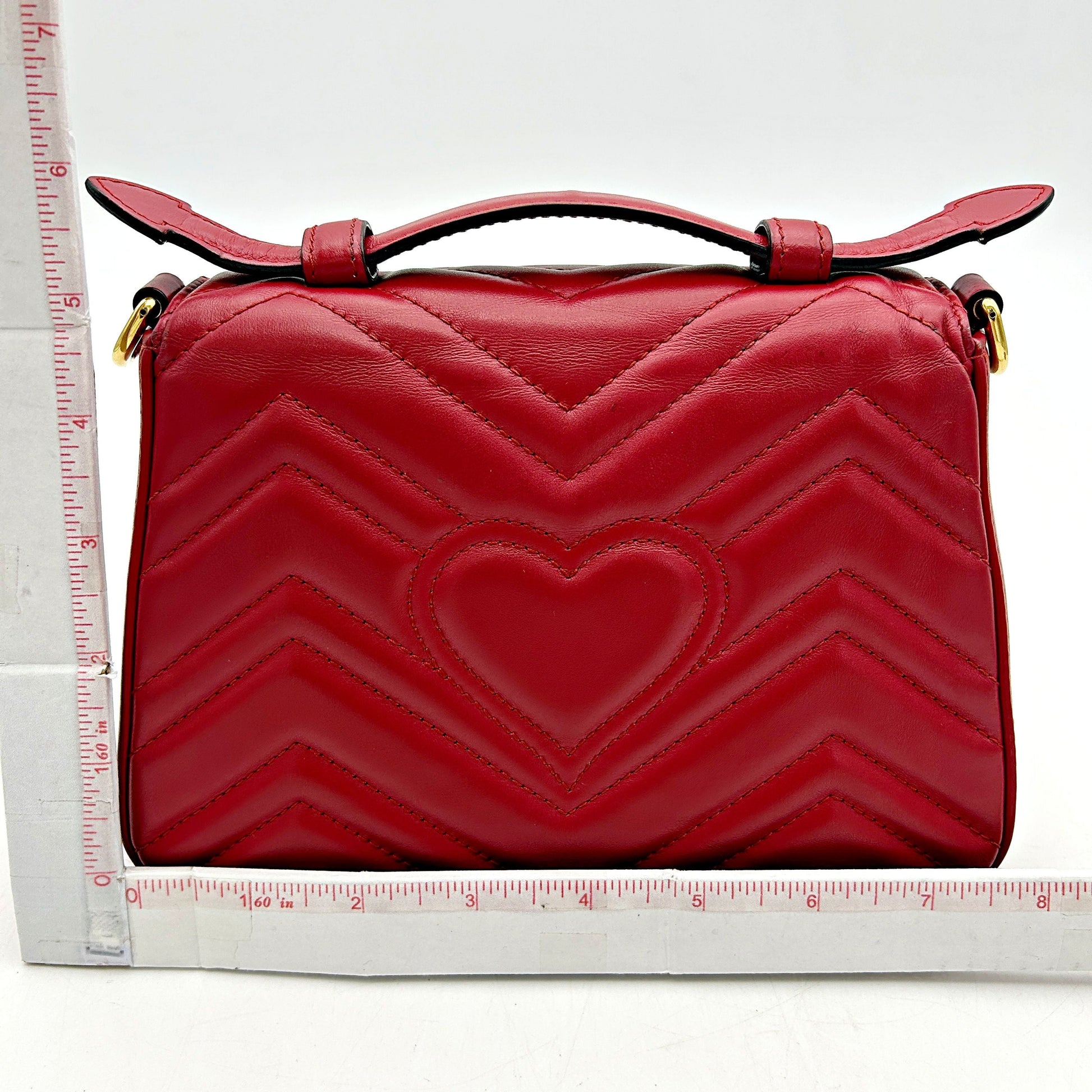 GUCCI Calfskin Matelasse Mini GG Marmont Top Handle Shoulder Bag Hibiscus Red LA24179