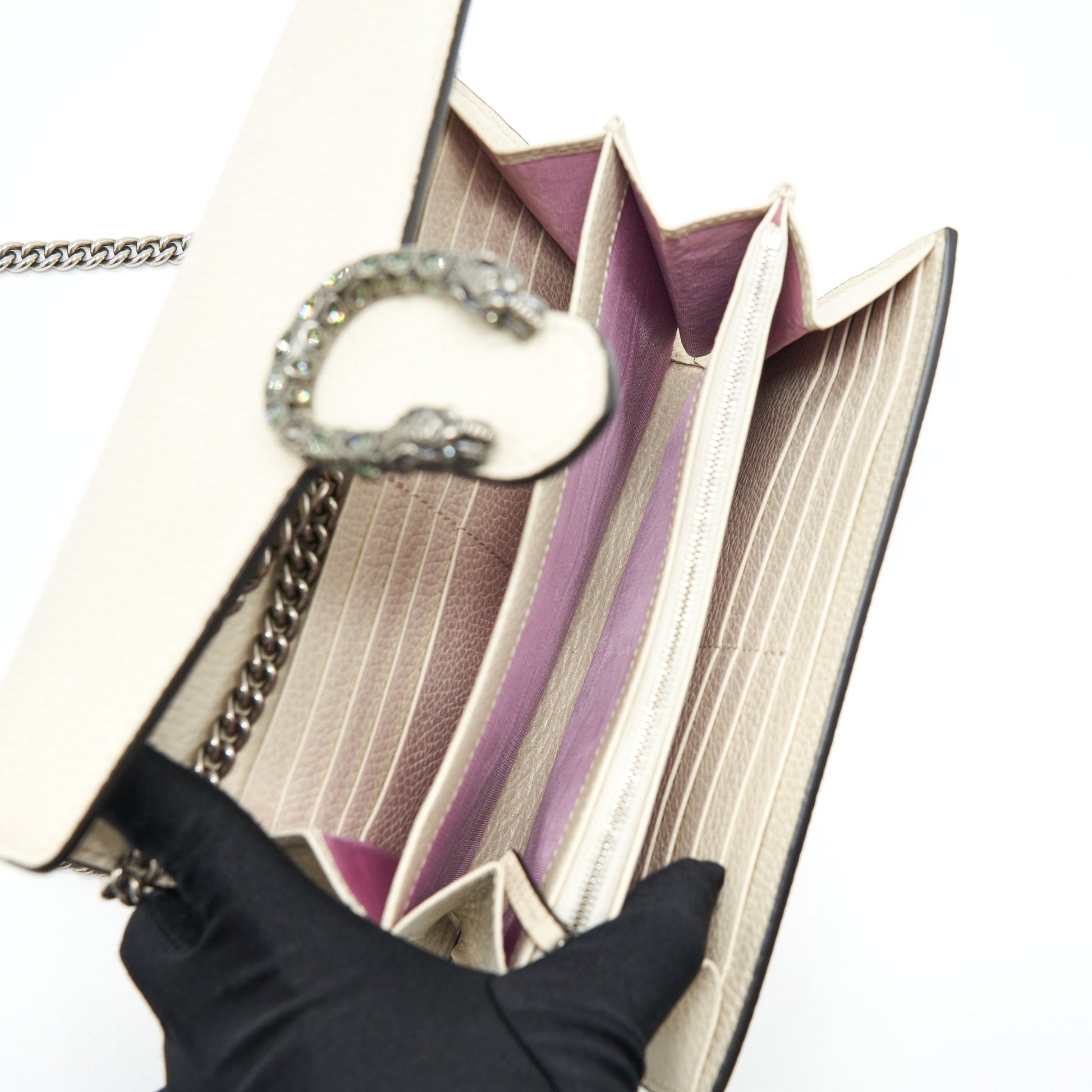 Gucci Dionysus Mini Chain Wallet Grained Calfskin White SHW
