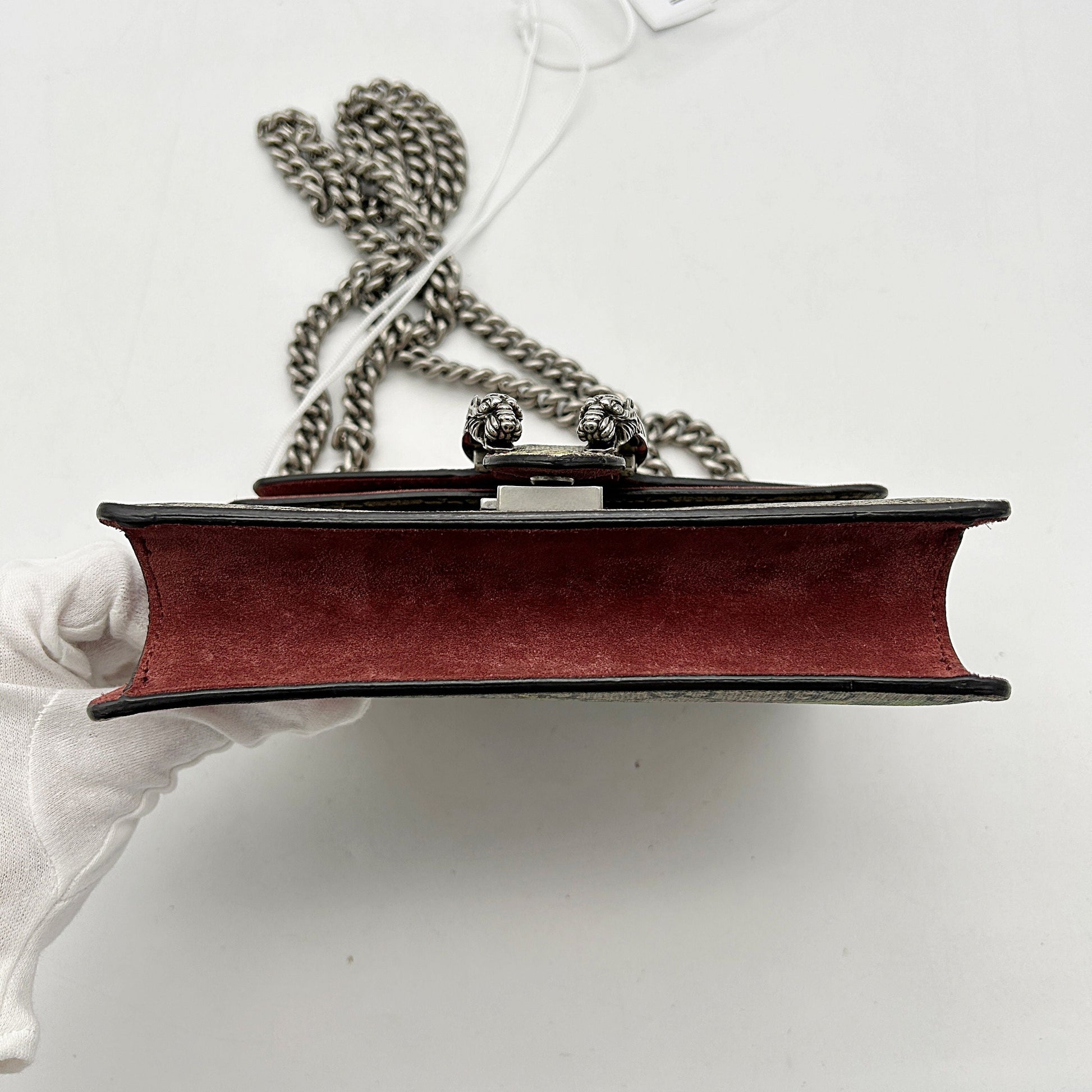 Introducing the Gucci Diorissimo Dionysus Mini, a sophisticated round shoulder bag that seamlessly blends elegance and functionality. Crafted from premium canvas with leather trim, this bag features the iconic GG Supreme pattern in neutral beige and brown tones. The antique gold hardware and distinctive double tiger head spur closure add a touch of luxury. Despite being , it remains in great condition with an 8.5/10 rating, exhibiting only a few minor stains inside and none on the surface. Perfect for the discerning woman, this bag is for peace of mind. |
