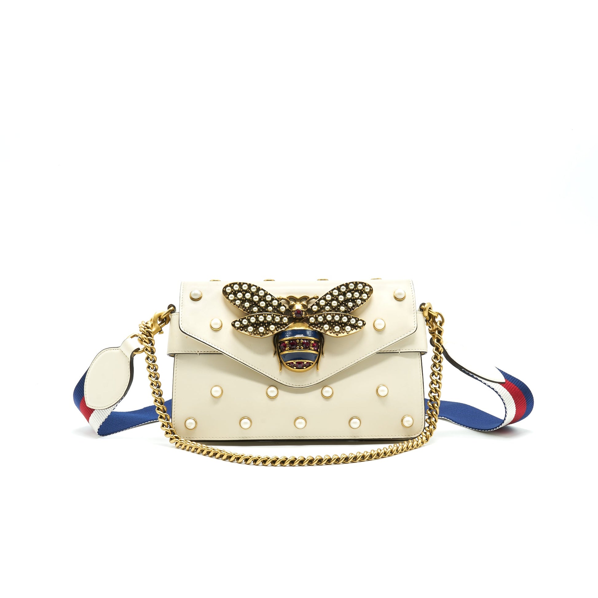 Gucci Embellished Broadway Bee Bag White