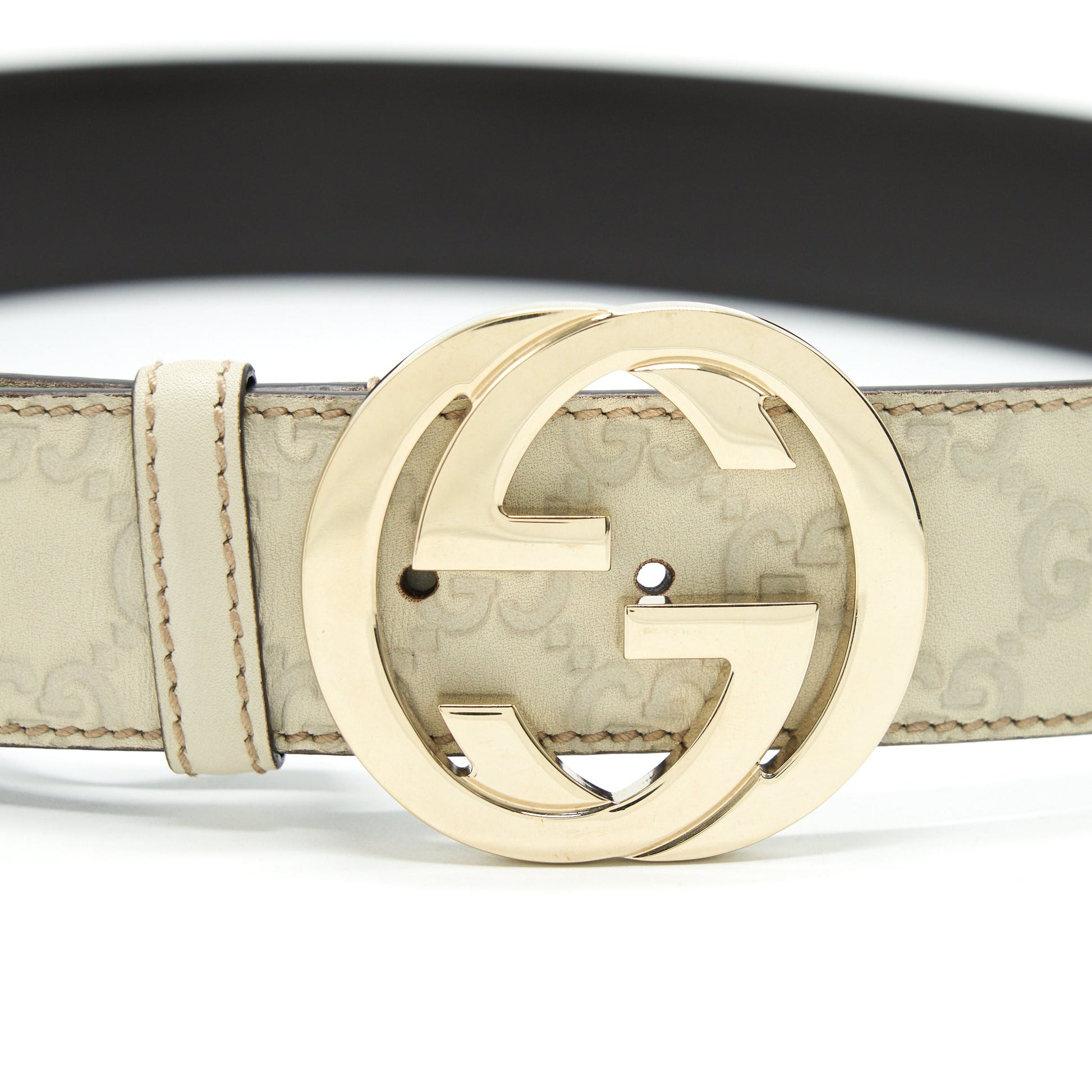Gucci GG Buckle Leather Belt White Size90