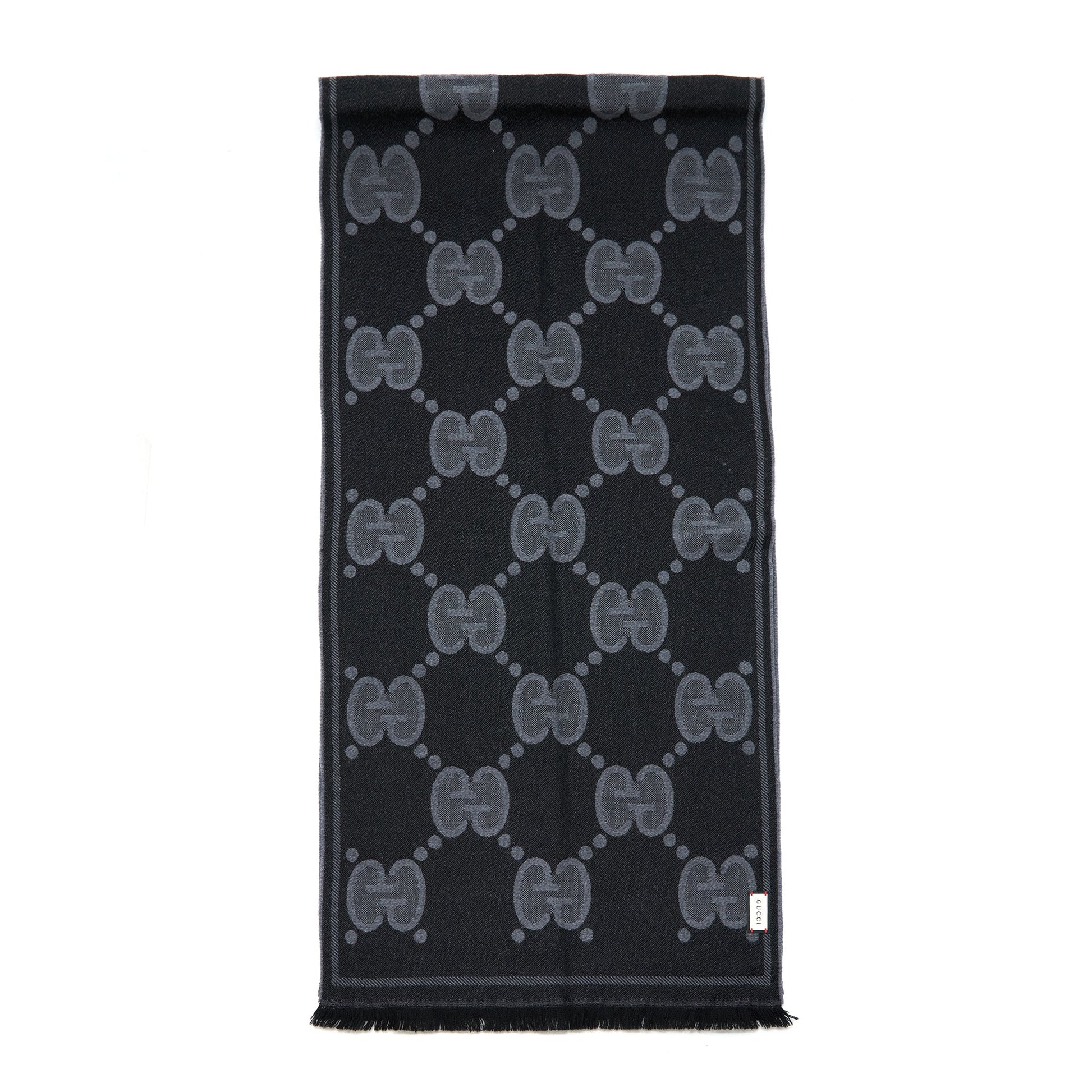 Gucci GG Printed 100% Wool Scarf Grey 45x195cm