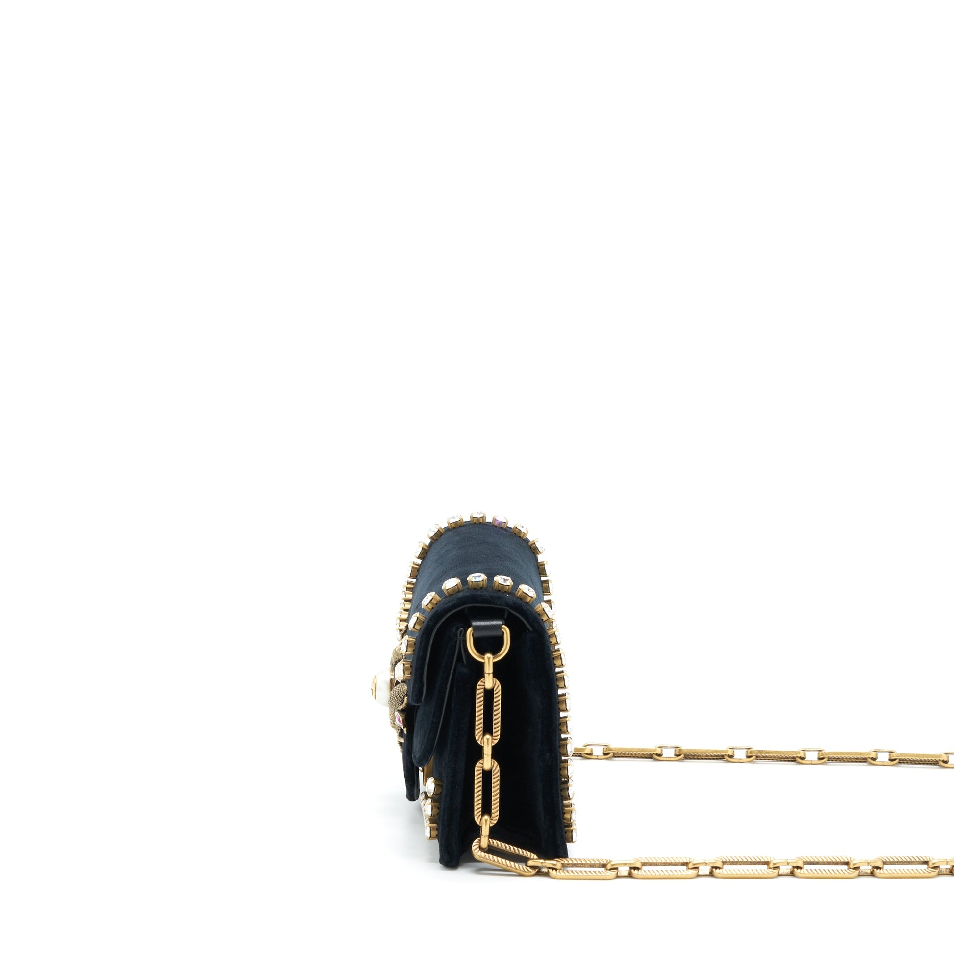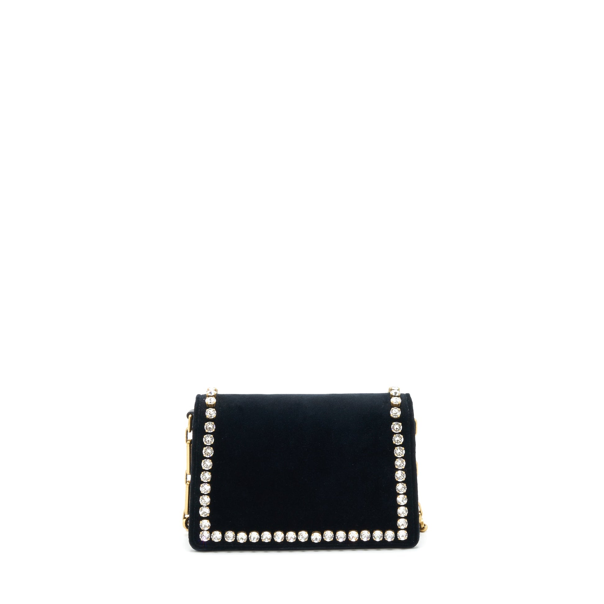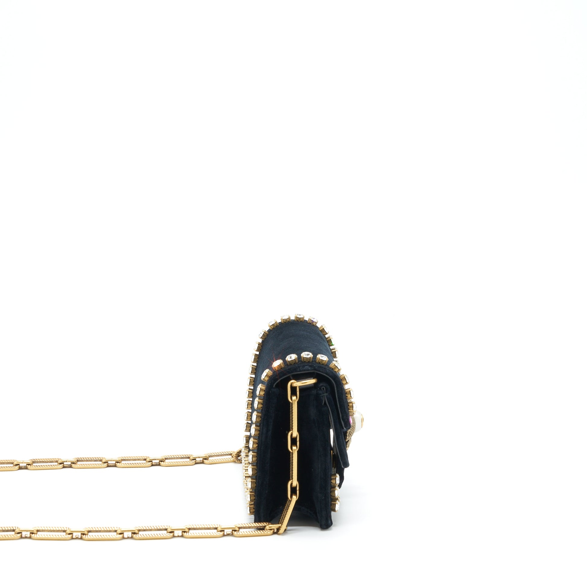 Gucci Mini Broadway Crossbody Bag Crystal Velvet Black Ruthenium Gold Hardware