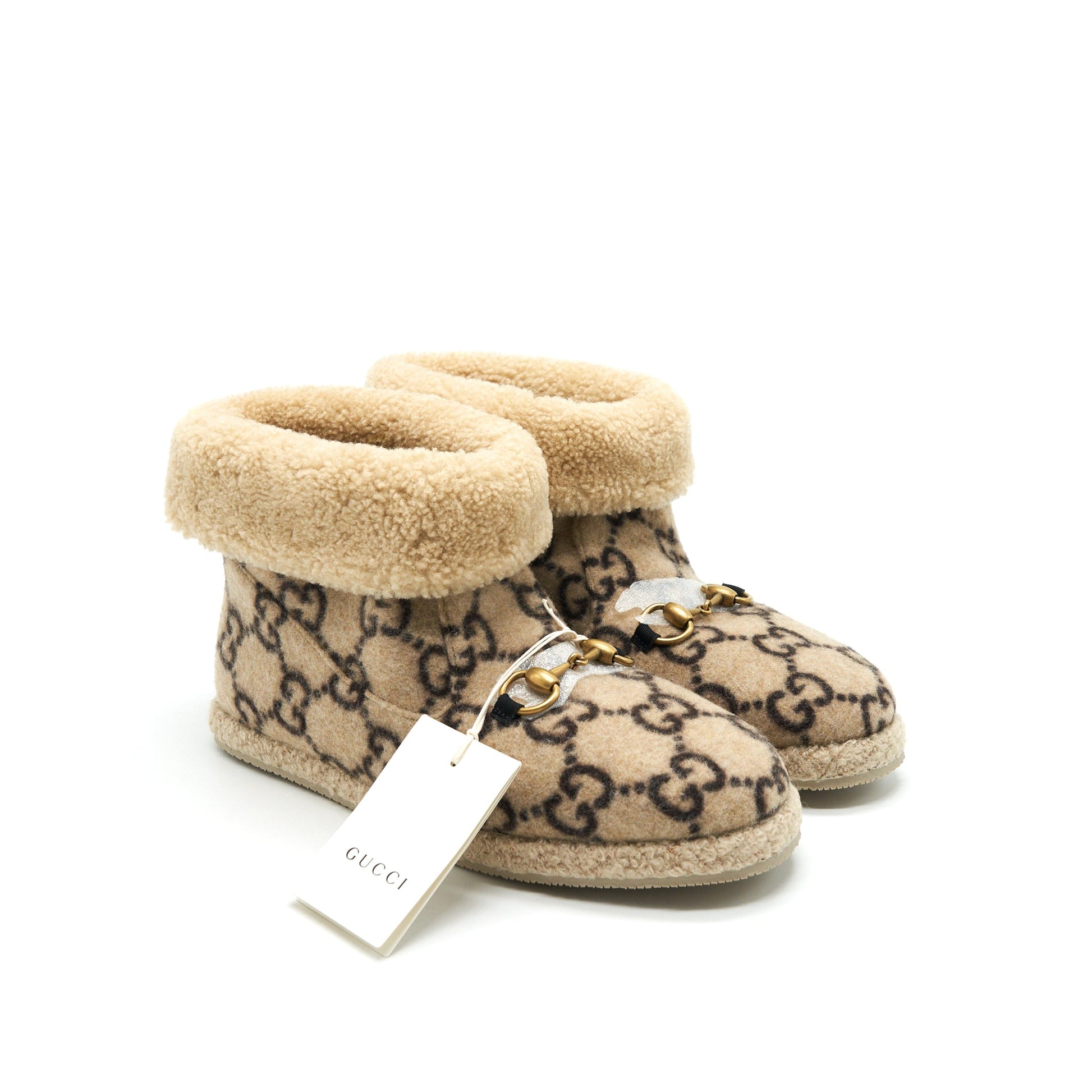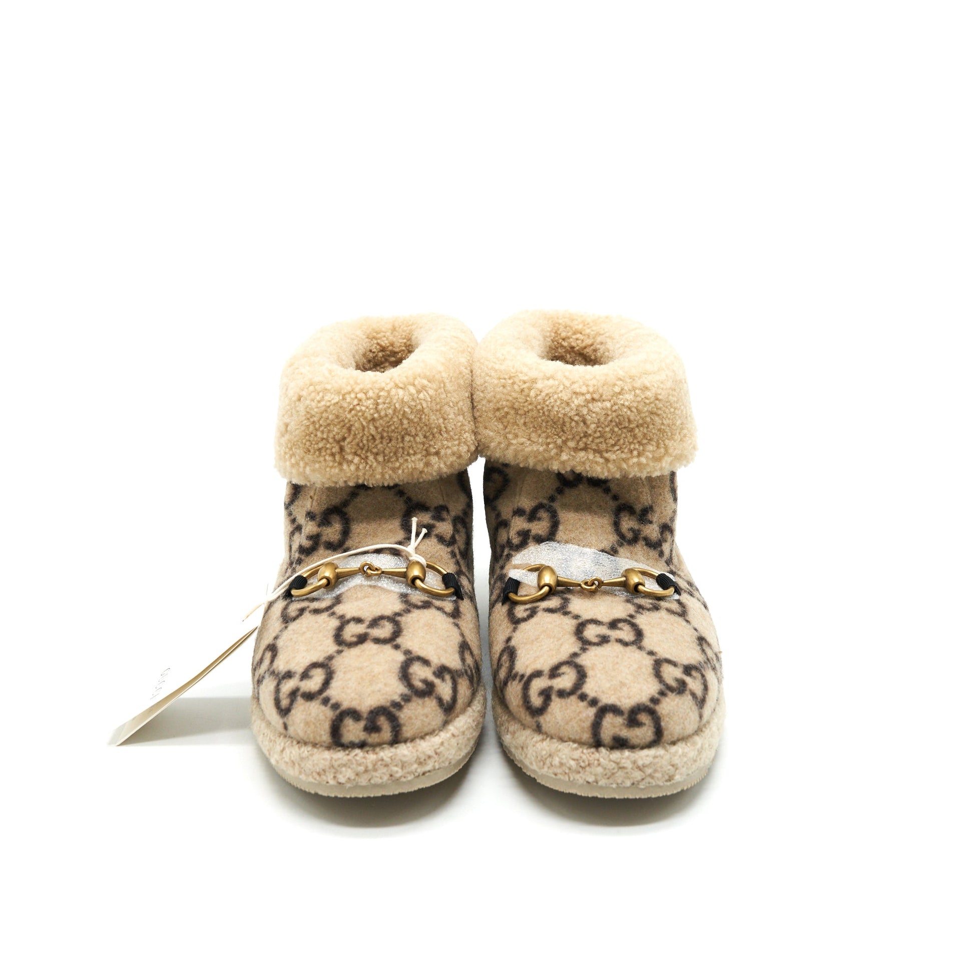 GUCCI Size 39 GG Wool Ankle Boots Beige