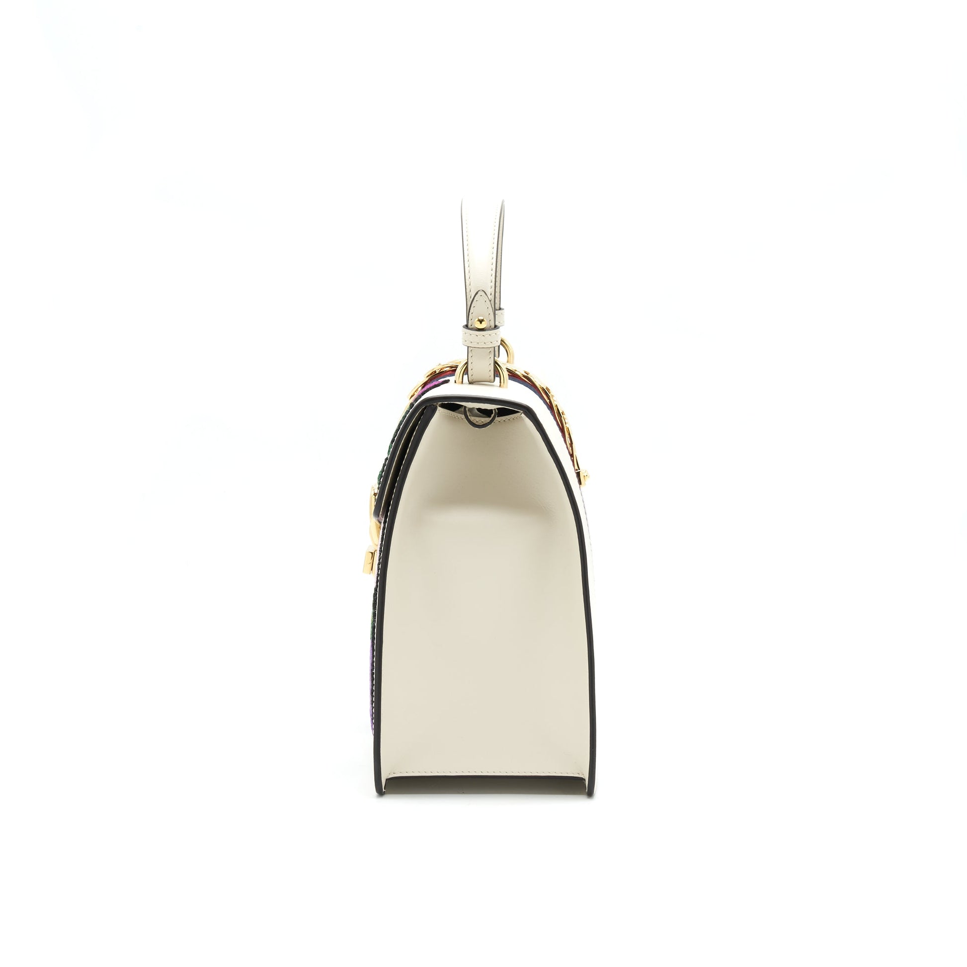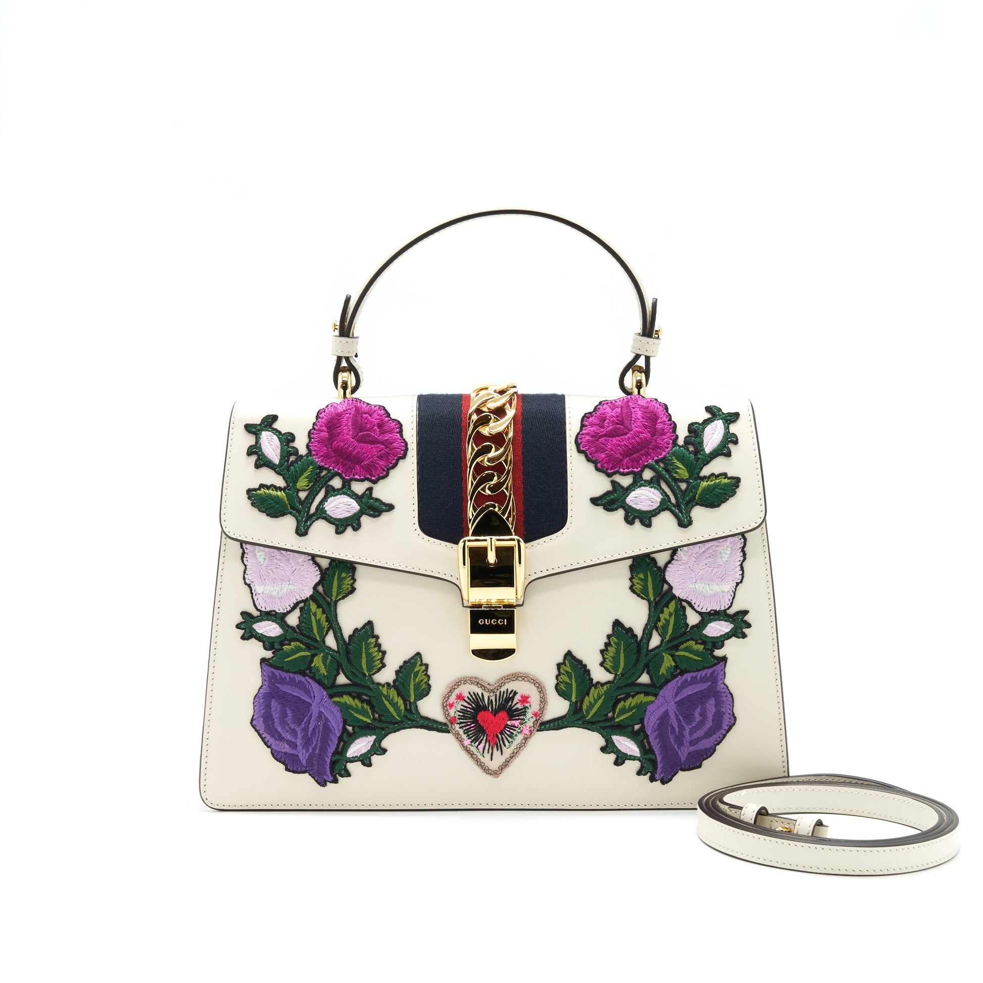 Gucci Sylvie Top Handle Embroidered Medium Tote Bag White