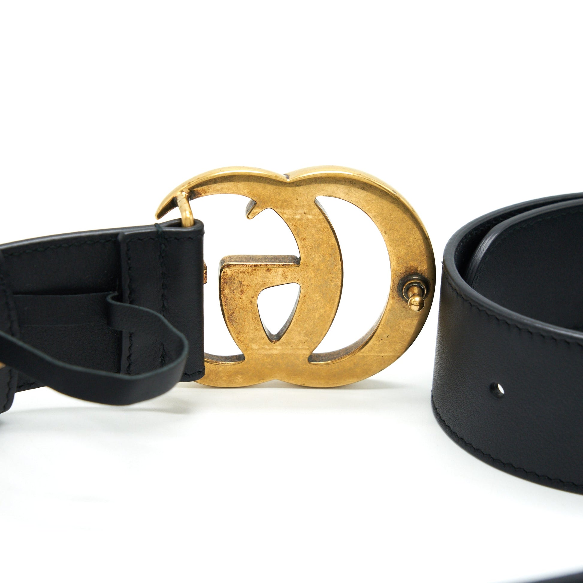 Gently Used ( This item is in very good condition with one watermark on leather near the GG logo. Slight scratches on GG logo.)