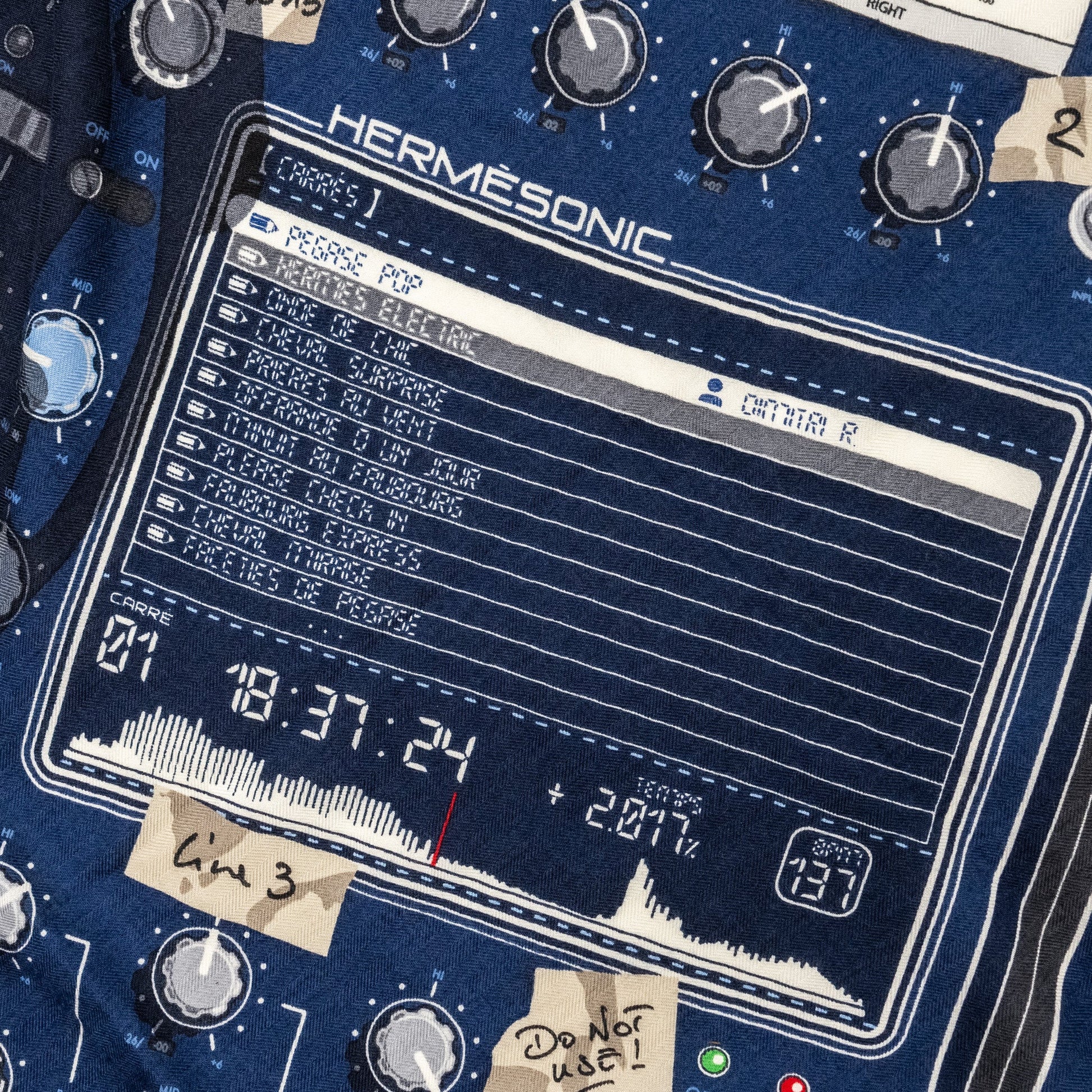 Hermes 100cm cashmere/ silk scarf last night multicolour navy / black / red