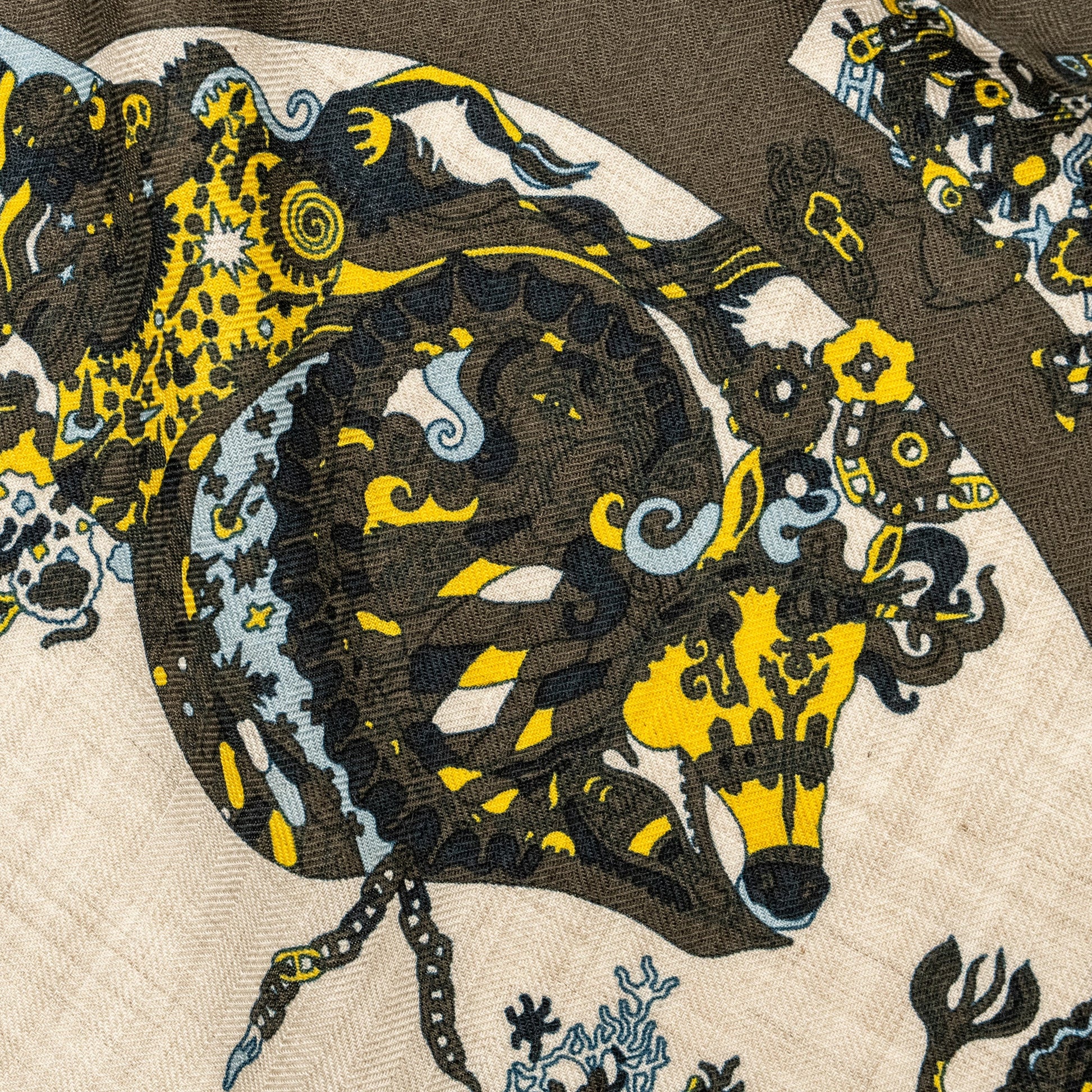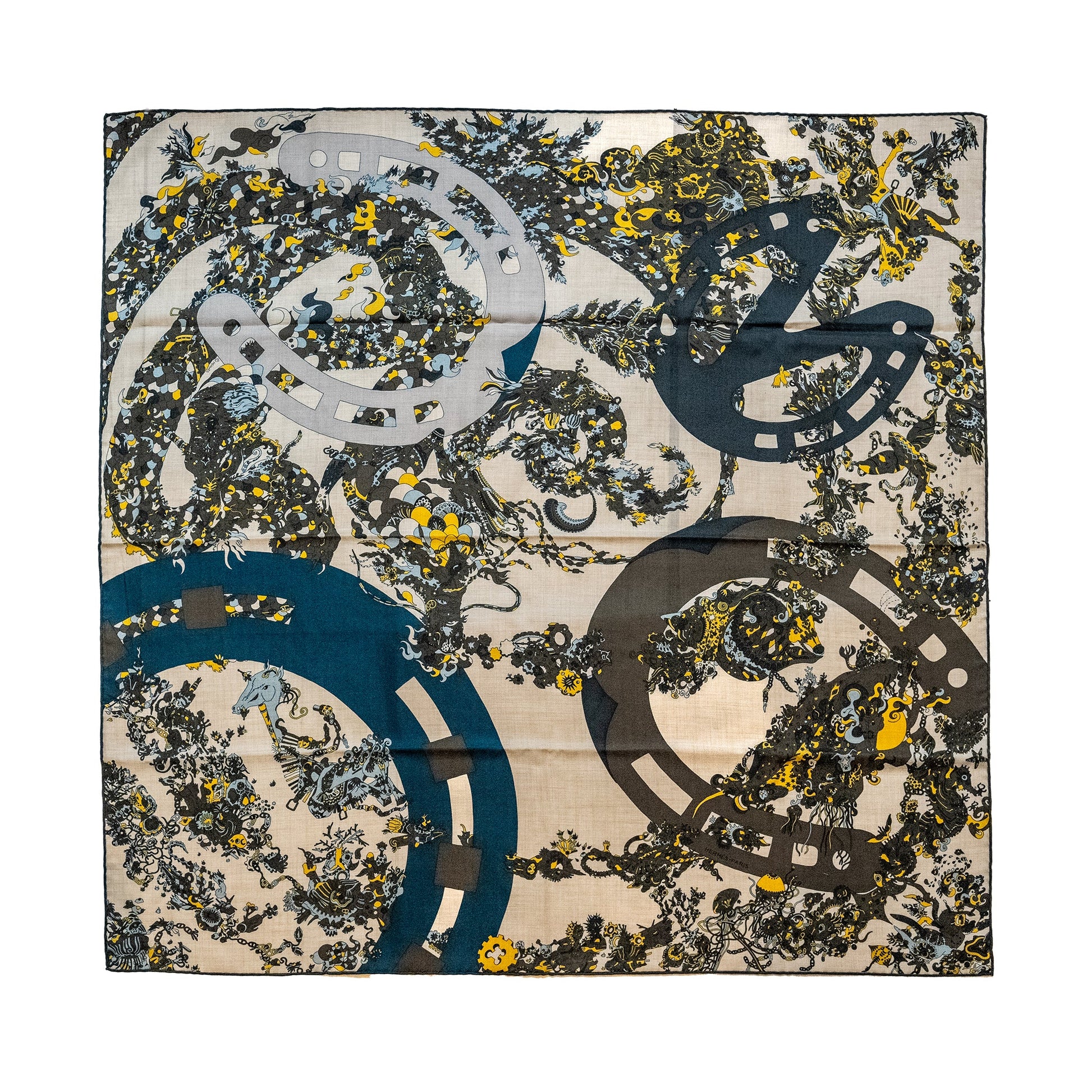 Hermes 100cm cashmere/silk scarf Quatre Chevaux multicolour