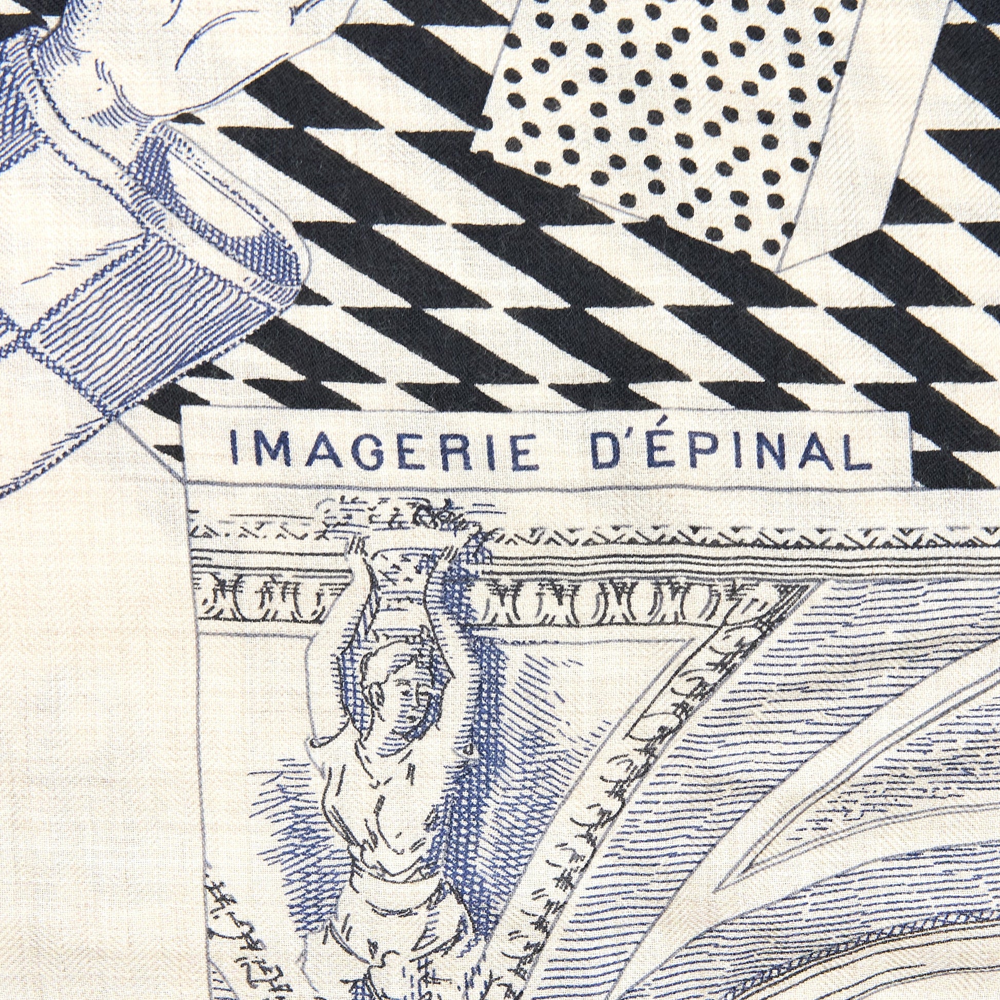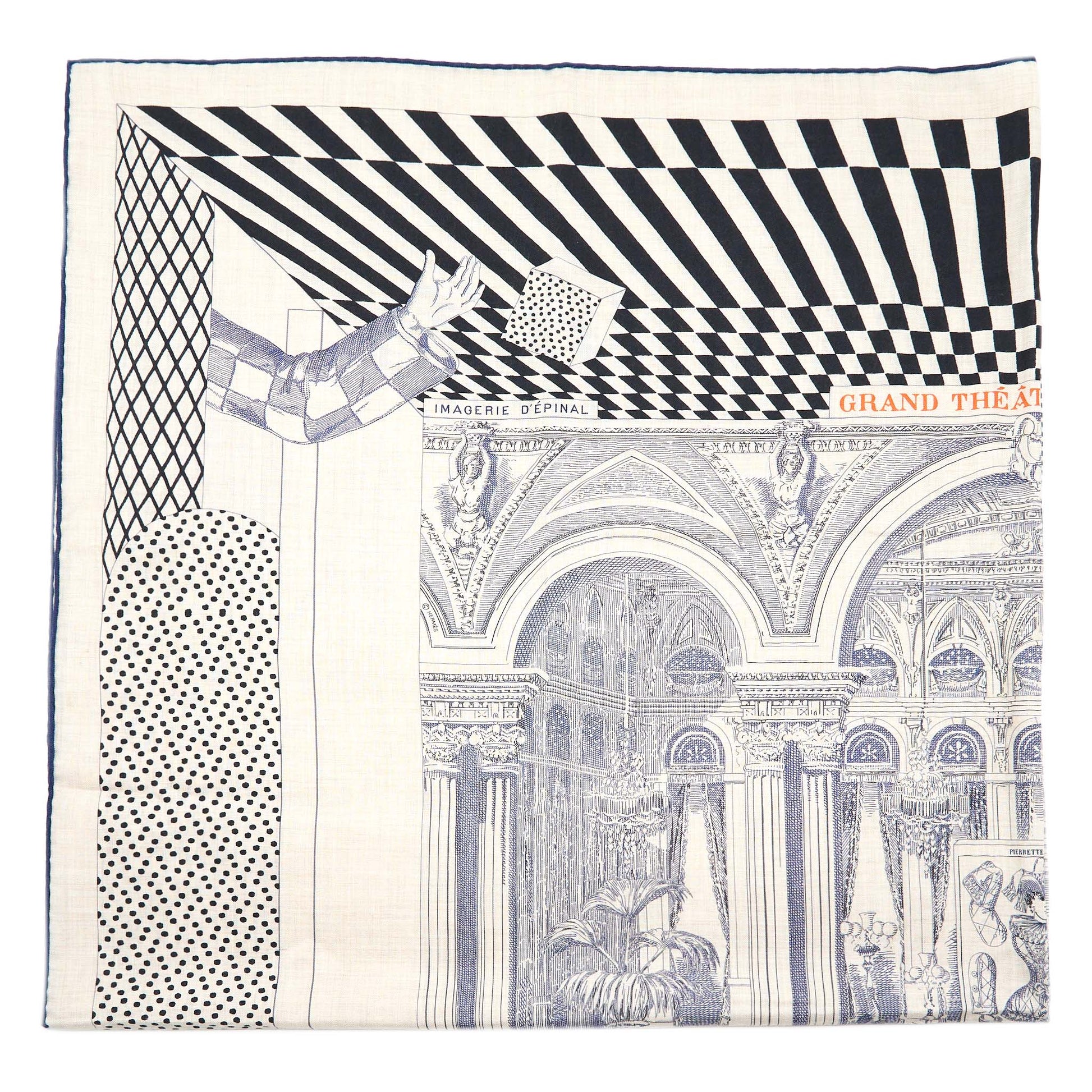 Hermes 140cm Cashmere And Silk Grand Theatre Nouveau Naturel/Marine/Noir