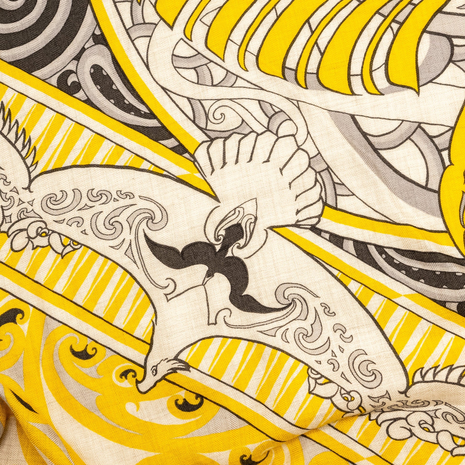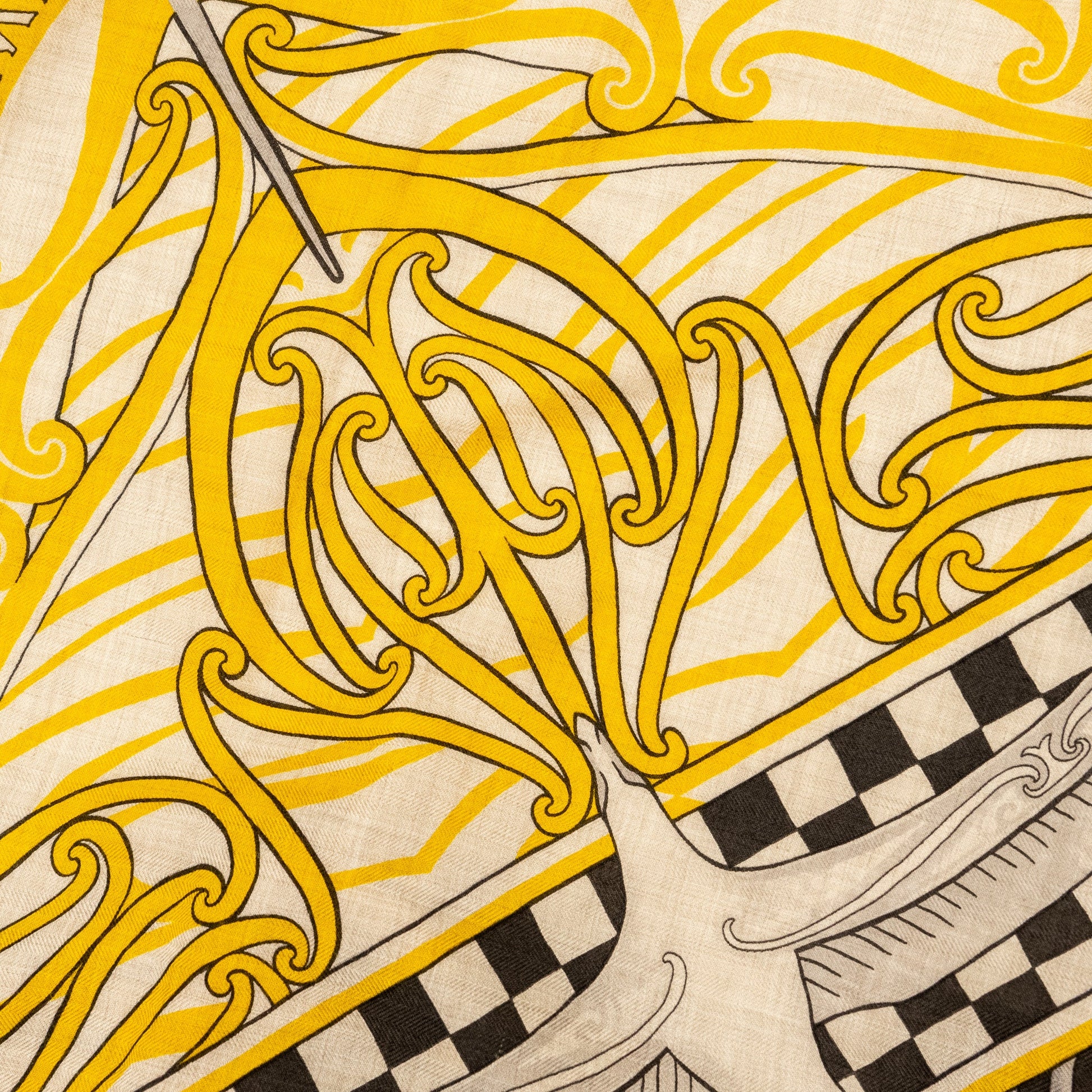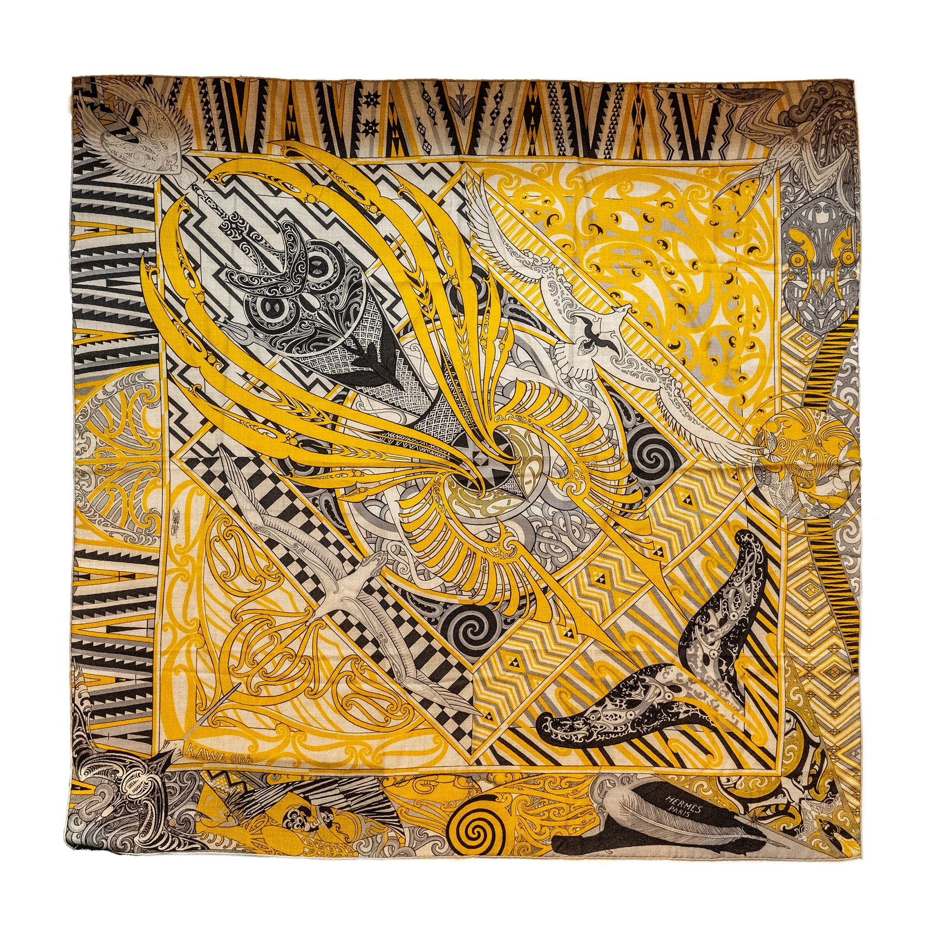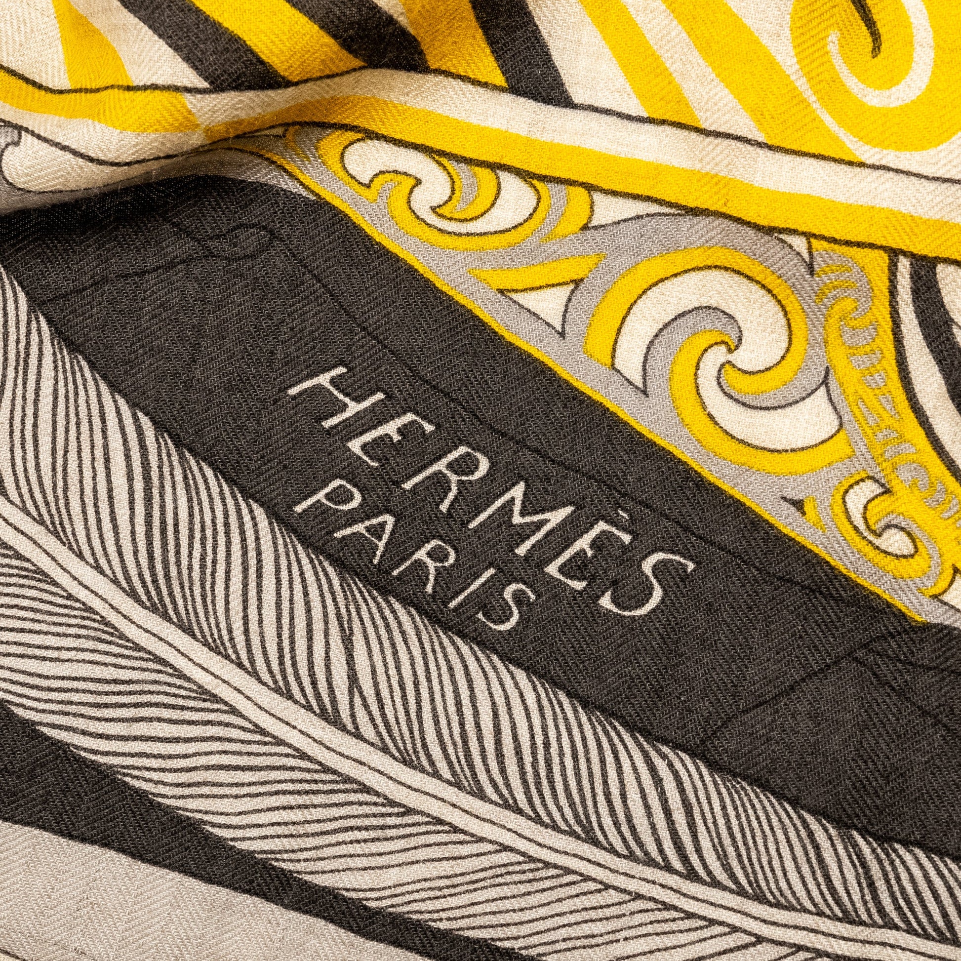 Hermes 140cm cashmere/ silk scarf Kara Ora multicolour yellow/ grey / beige