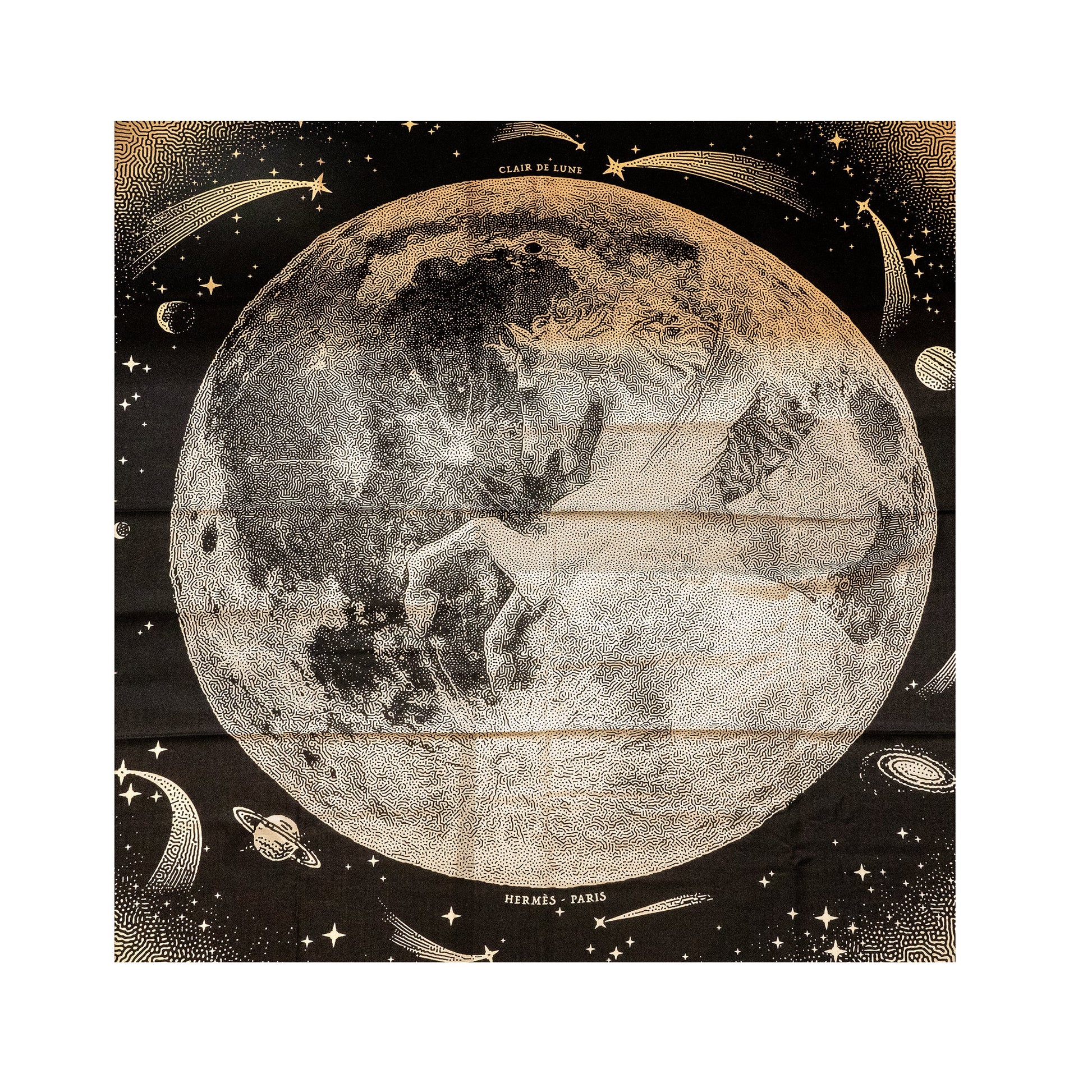 Hermes 140cm Clair De Kune scarf / shawl cashmere / silk black / white
