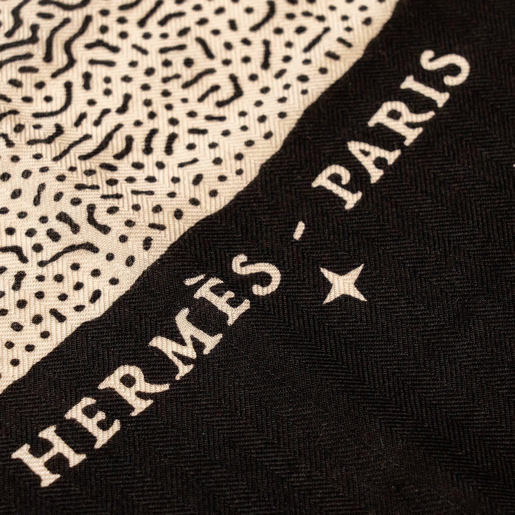 Hermes 140cm Clair de lune shawl / scarf cashmere / silk black / white