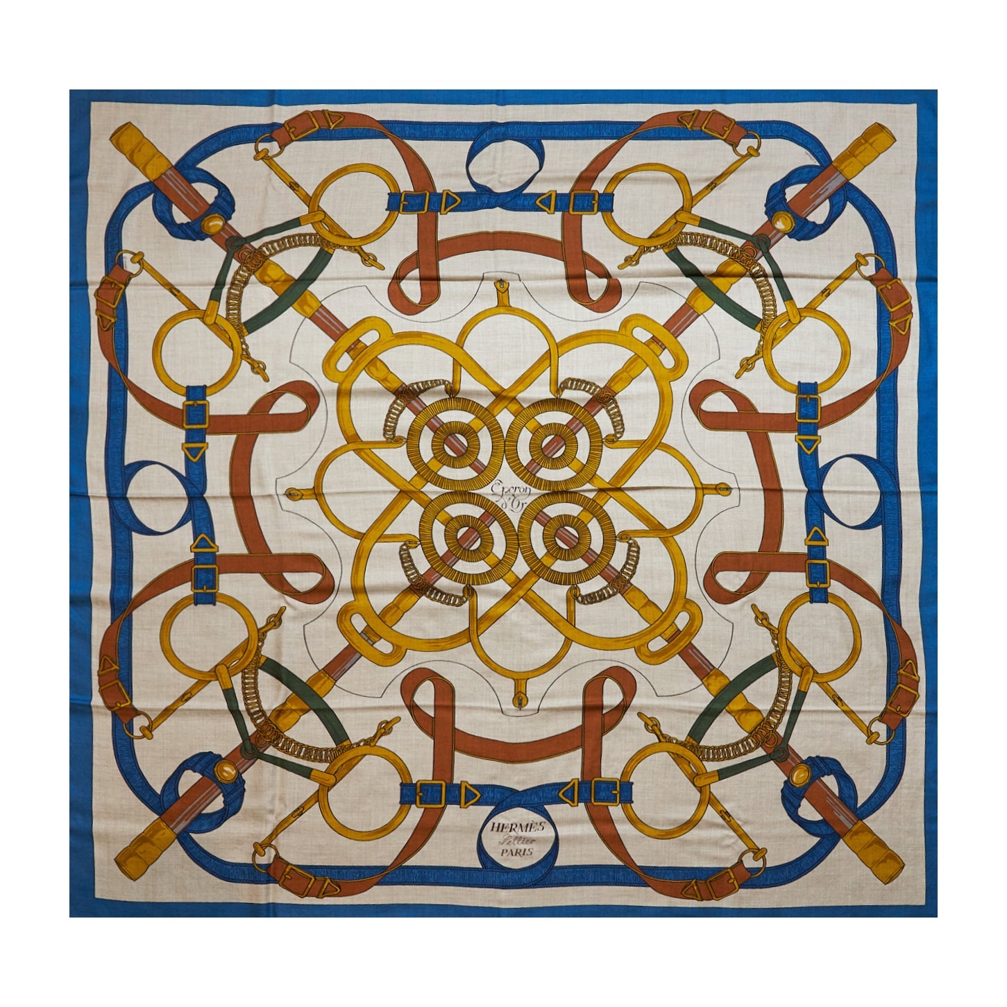 Hermes 140cm Scarf Eperon D OR Chale Cashmere Bleu/Cobalt/Nature