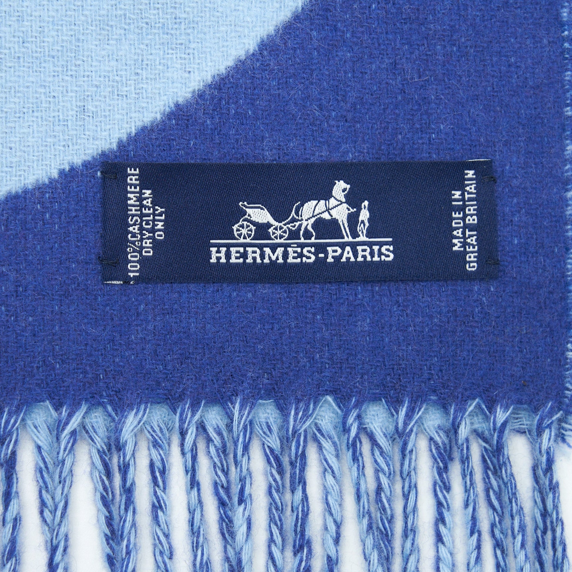 Hermes 140cm x 30cm Cashmere Casaque Charm Scarf Blue/Light Blue
