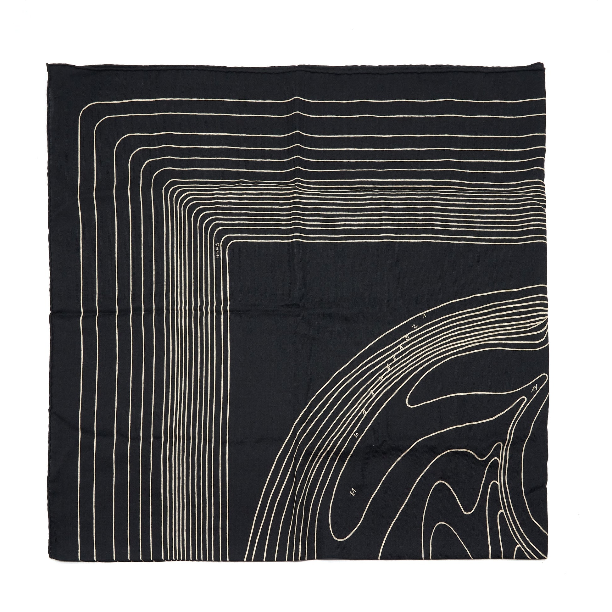 Details: Condition: 9.9 /10 Likely New ( This item is inexcellent condition without any visible marks. ) Colour: Black/ Gold Measurement: 140x 140 cm Material : 100% Silk Inclusion: Original Box, Copy of Receipt Origin: France