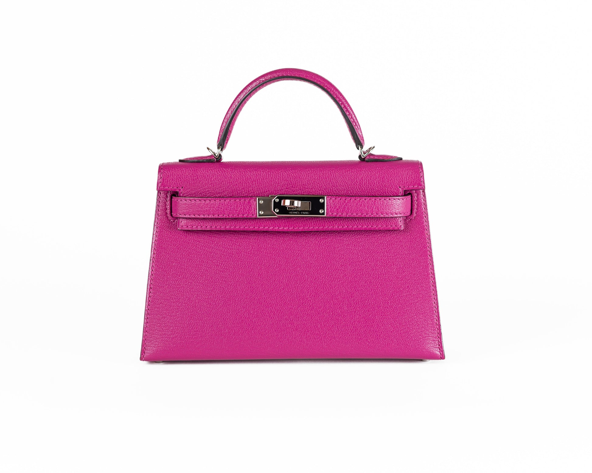Hermes 20cm Rose Pourpre Chevre Mini Kelly w/ Palladium Hardware