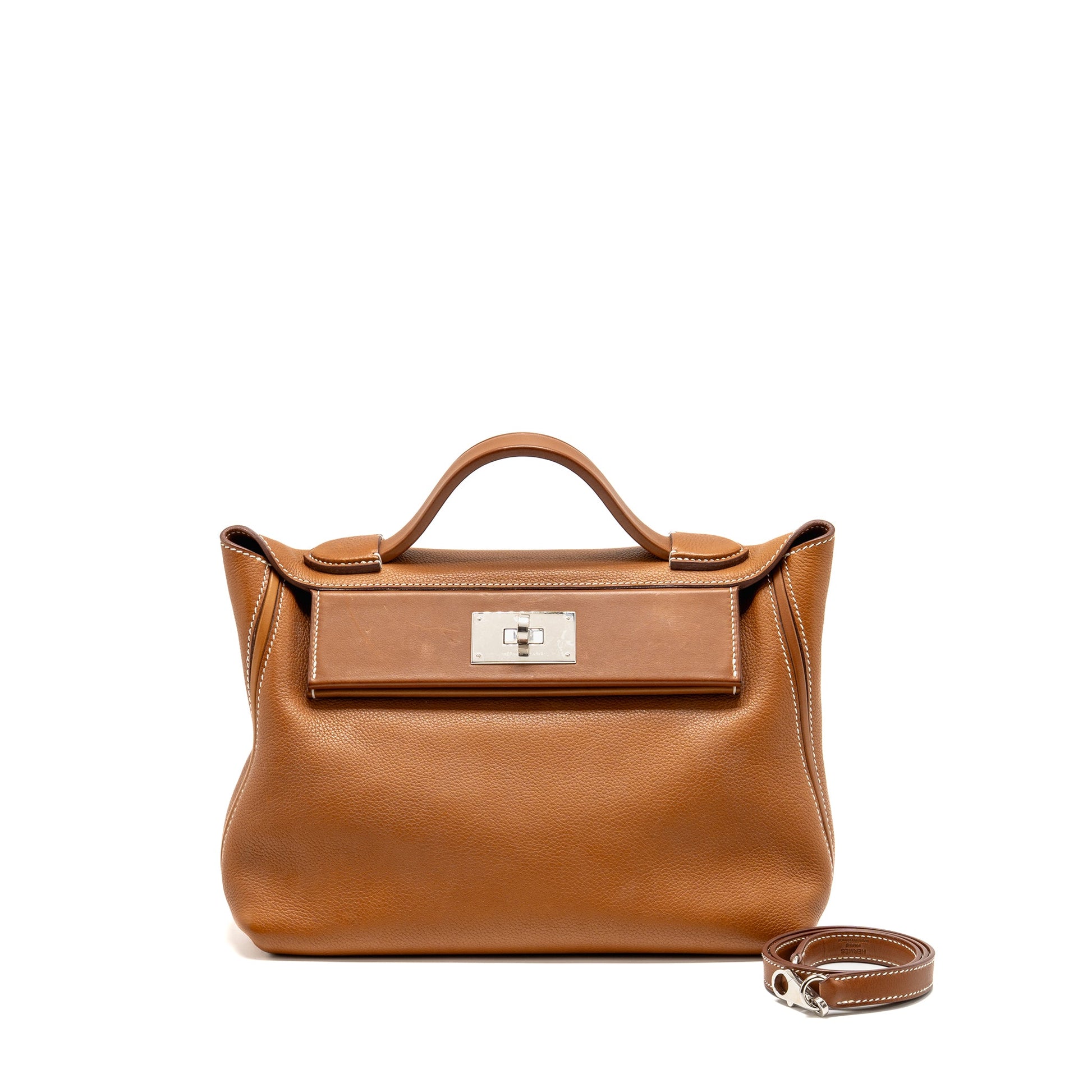 Hermes 24/24 2424 - 29 bag barenia faubourg fauve SHW stamp D