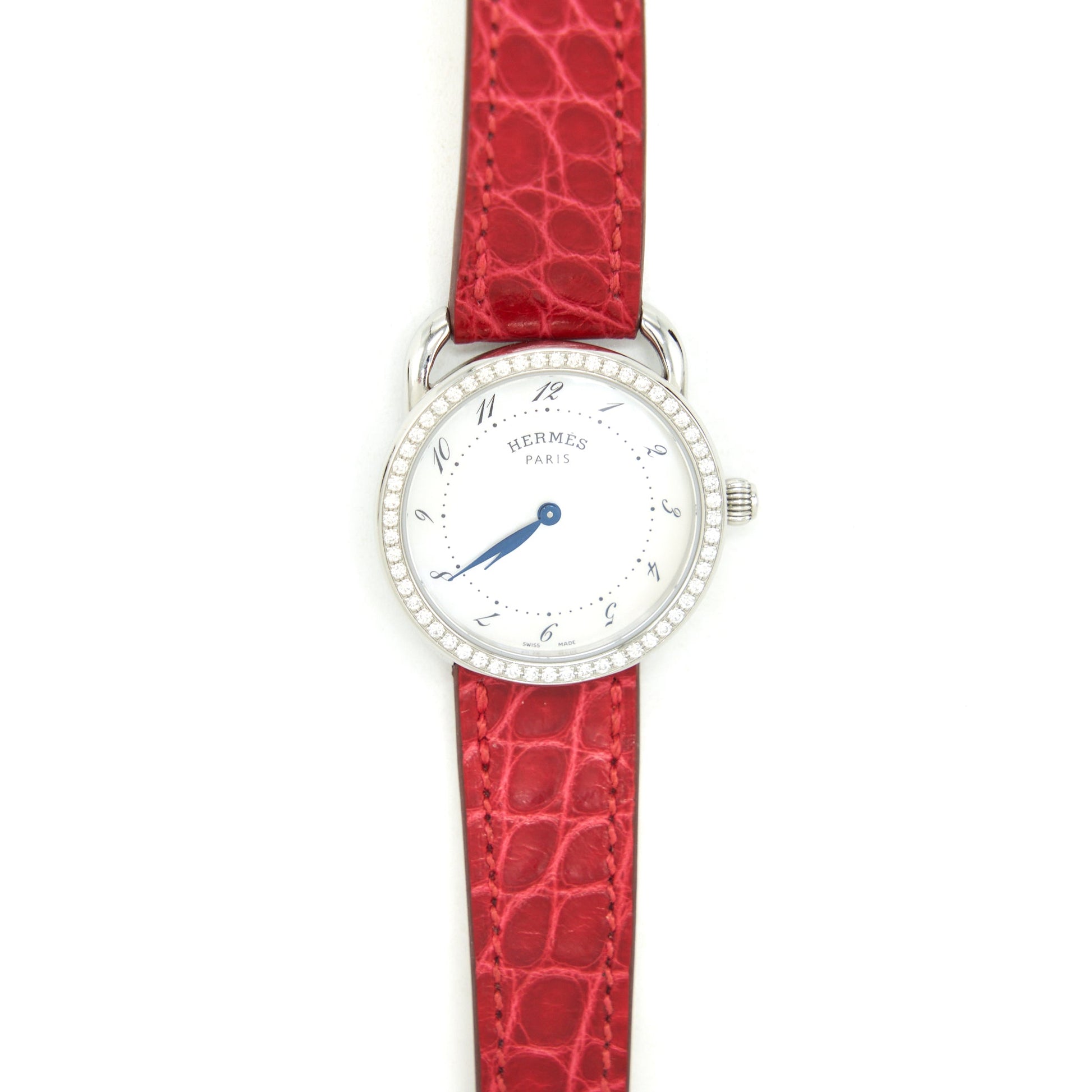 Hermes 28mm Arceau Watch With Diamonds/Alligator Strap