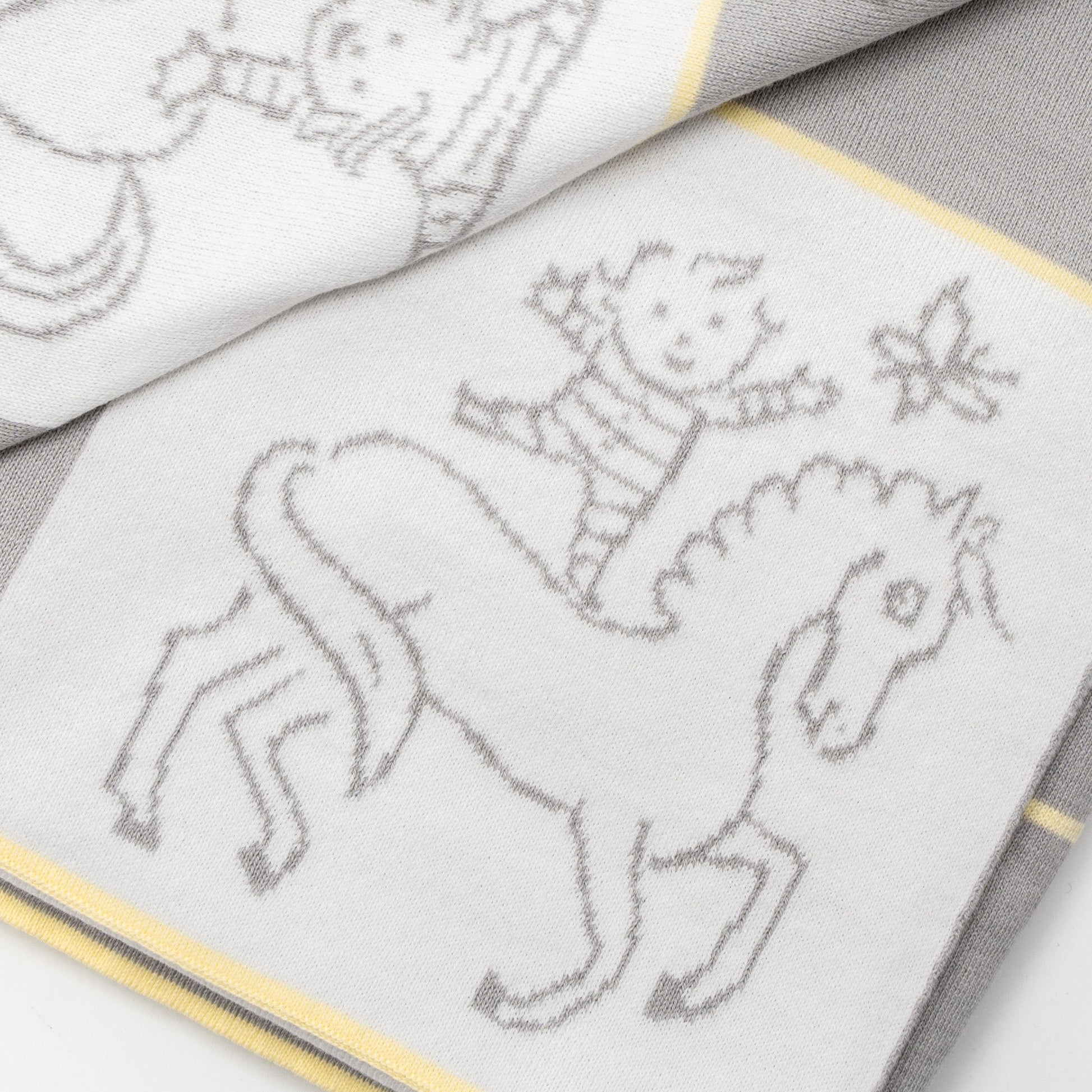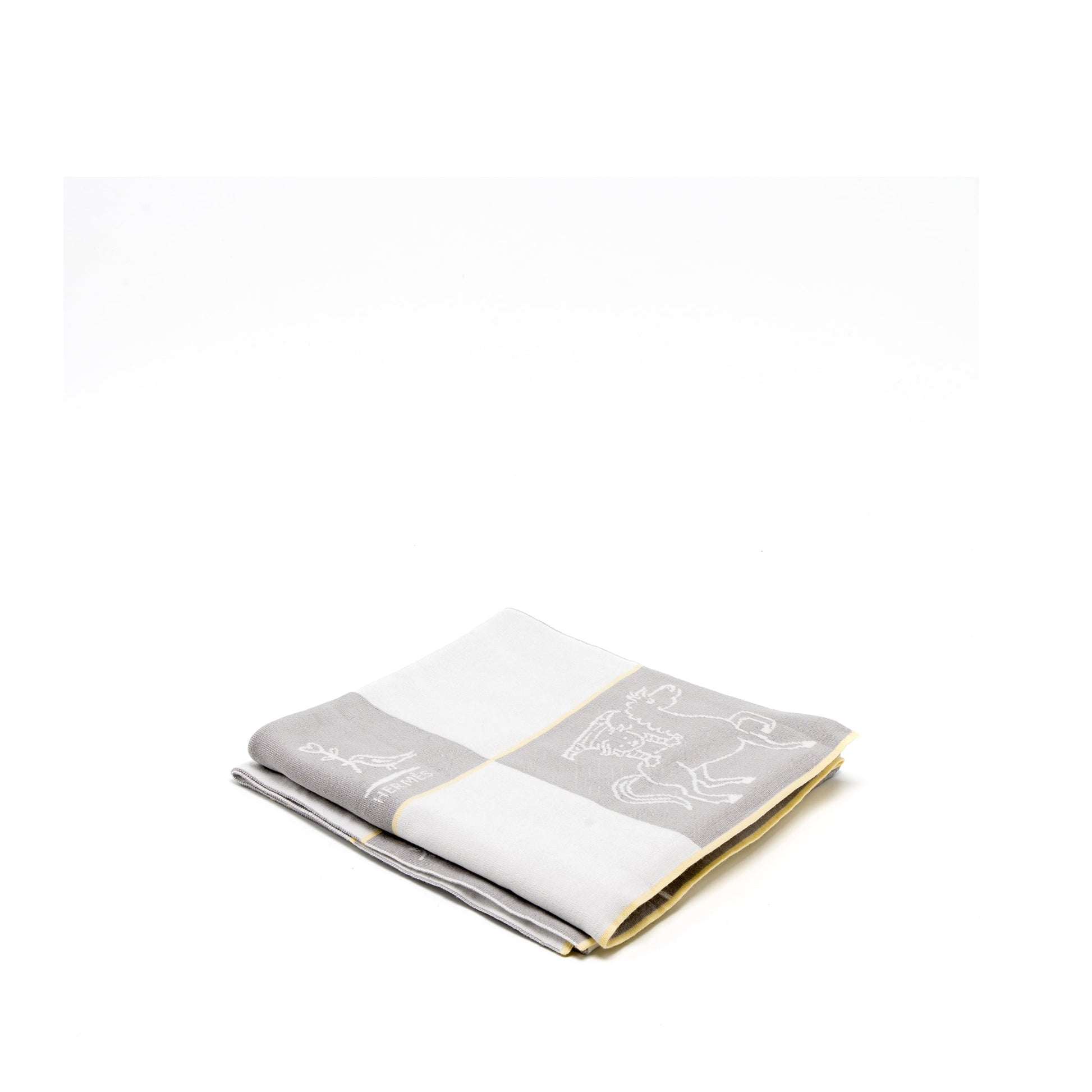 Hermes 70x100 Plaid Maille Cabriole Baby Blanket Coton Gris Perle