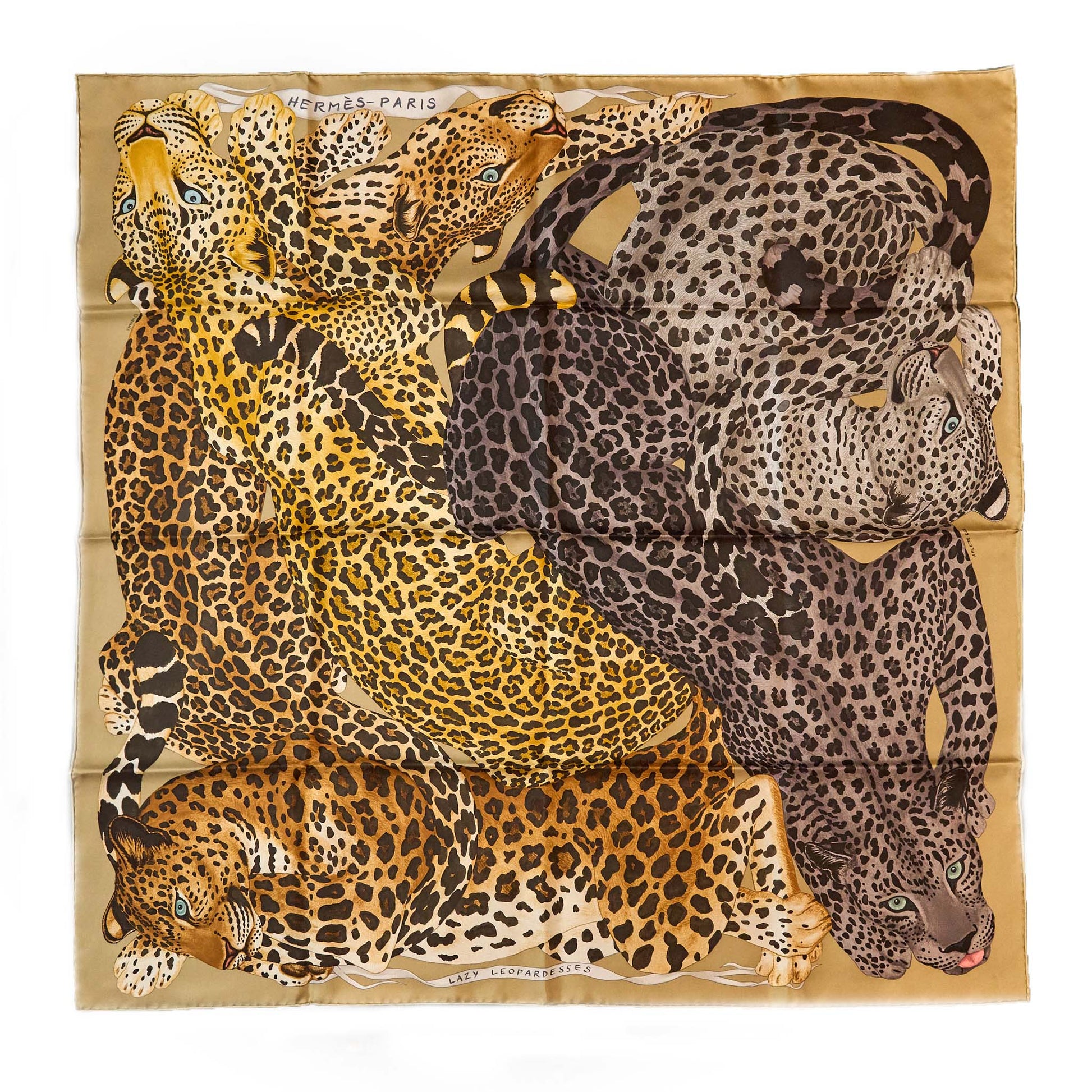 Hermes 90 x 90 Silk Scarf Lazy Leopardesses