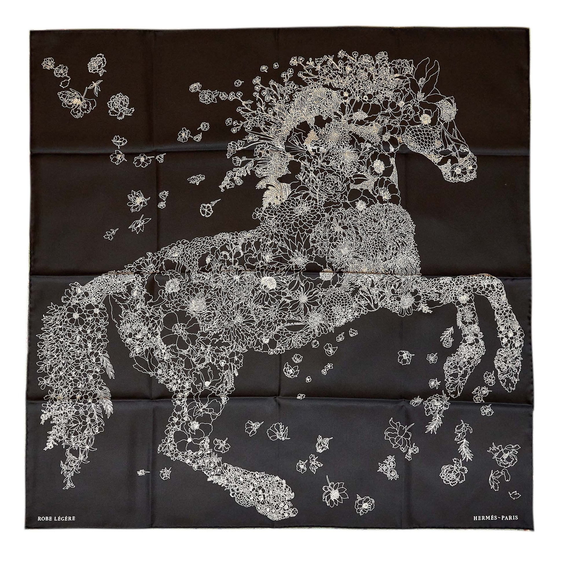 Hermes 90 X 90 Silk Scarf Robe Levered Black/White