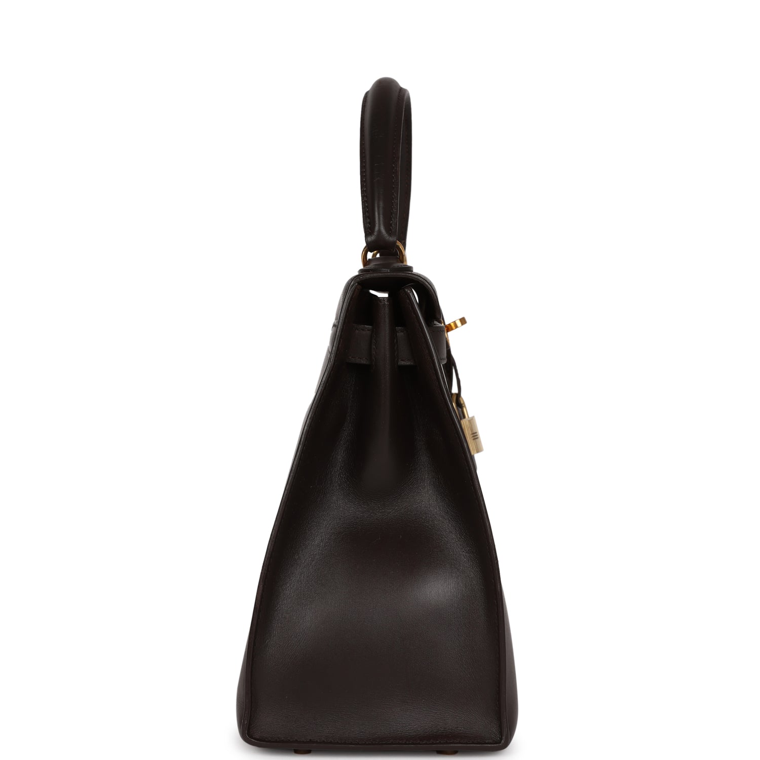 Vintage Hermes Kelly Sellier 28 Chocolate Box Gold Hardware