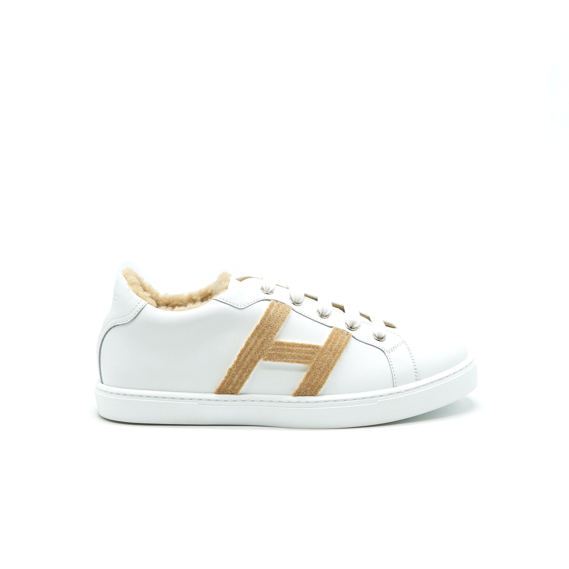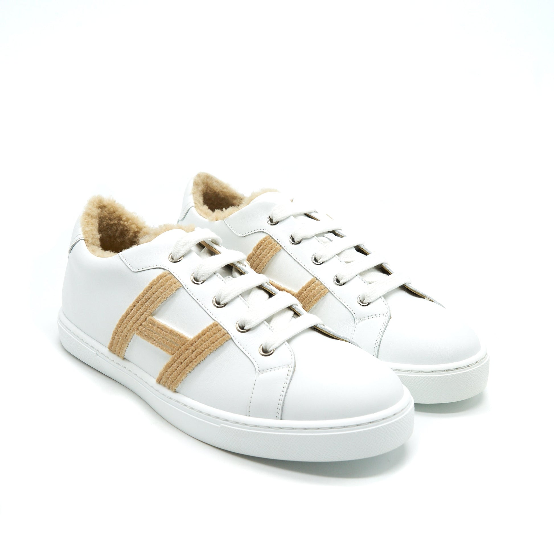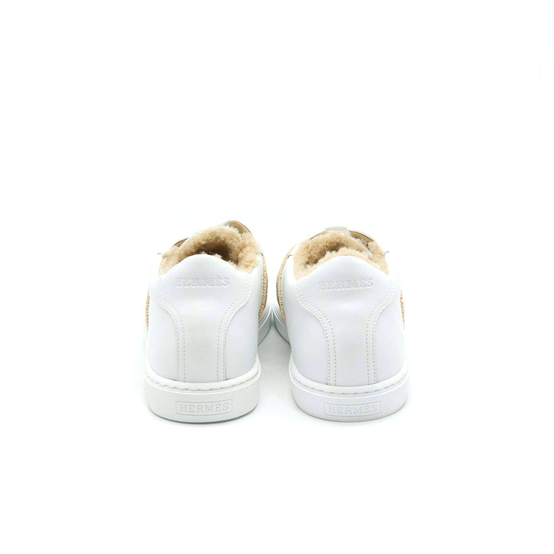 Details: Condition: 9.9/10 Kept Unused(This item is kept unused and inpristine condition.) Colour :White / Beige Hardware Colour: Silver Tone Size: 39 (We do not offer exchange or refund if the size does not fit. Please contact our sales representative before the purchase for assistant) Material: Leather / Fury Style: Sneaker Inclusion: Full set with Receipt Origin: Italy