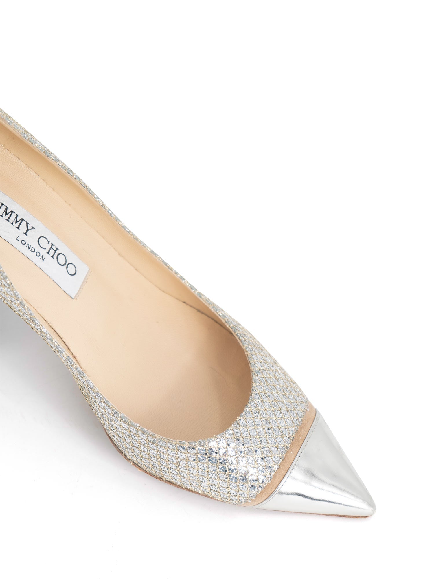 Jimmy Choo Logo Glitter Kitten Heel Pointy Shoes Silver