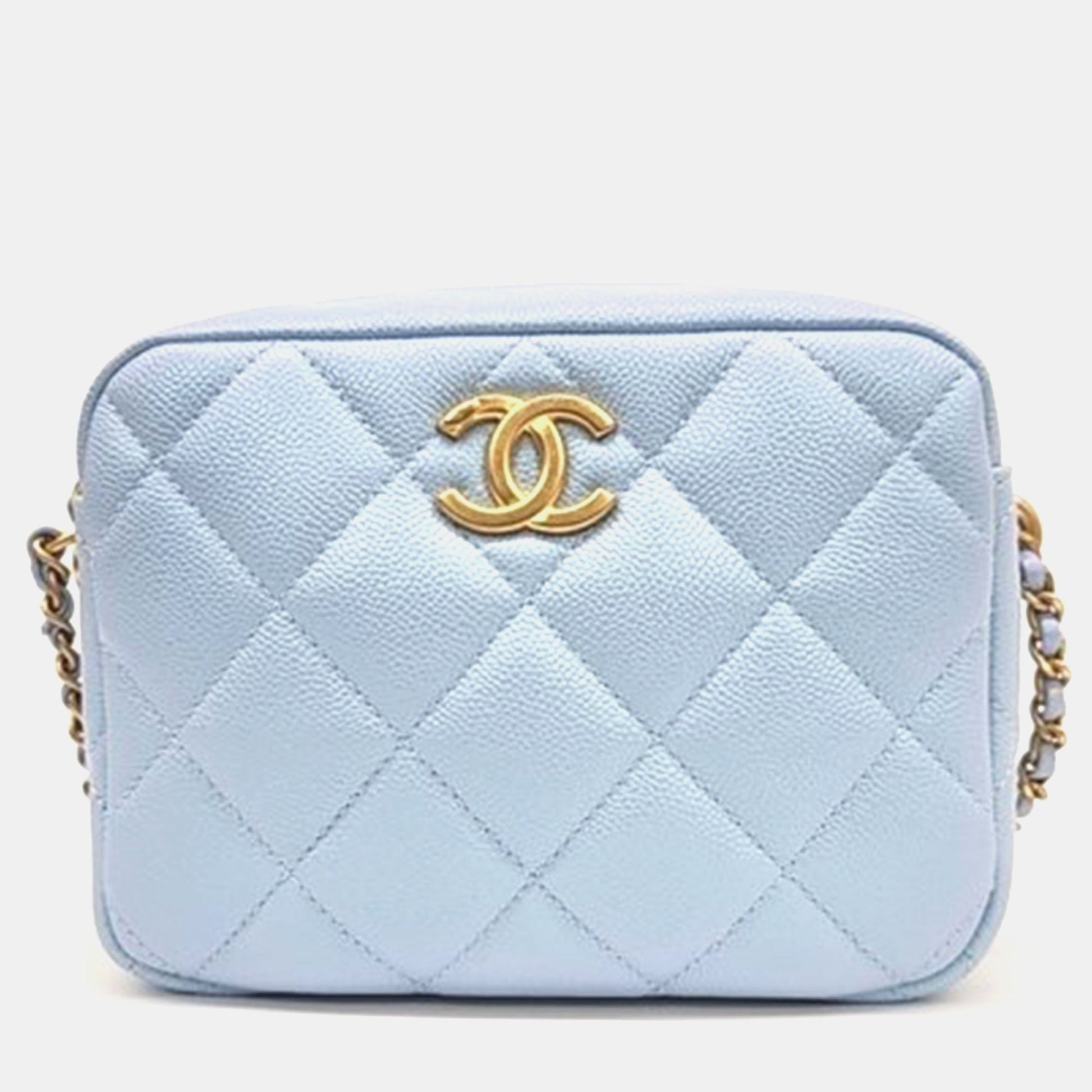 Chanel Light Blue Iridescent Caviar Mini Camera Bag