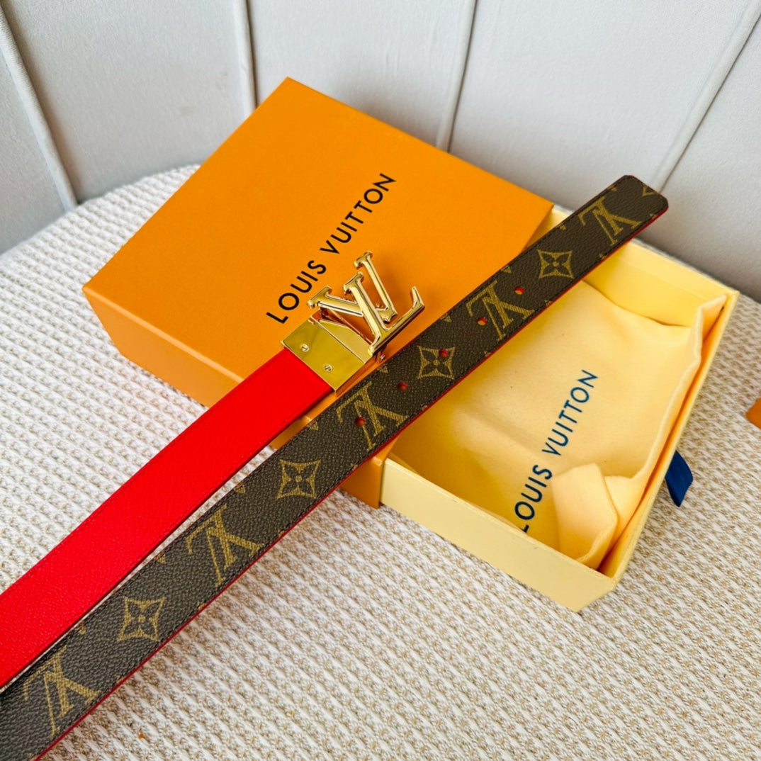 Louis Vuitton Initiales 30mm Reversible Belt Gold Rotating Buckle Red Brown Leather
