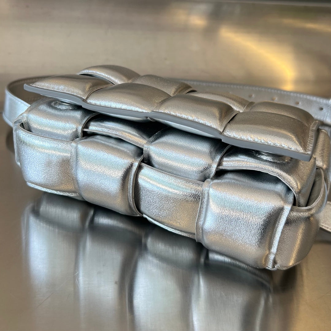 Bottega Veneta MINI CASSETTE 18 IN SILVER LAMBSKIN
