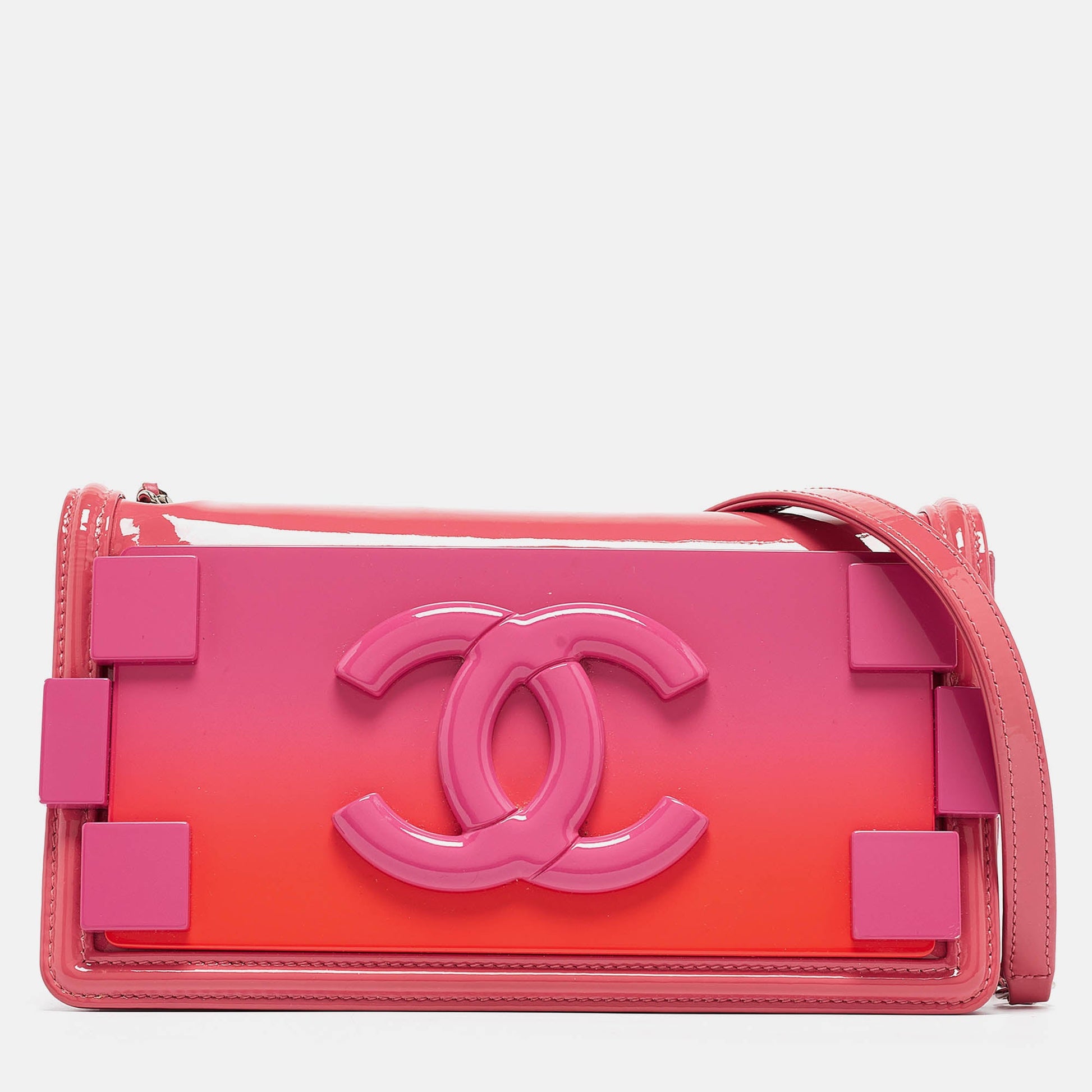 Chanel Pink/Orange Plexiglass and Patent Leather Small Boy Brick Flap Bag