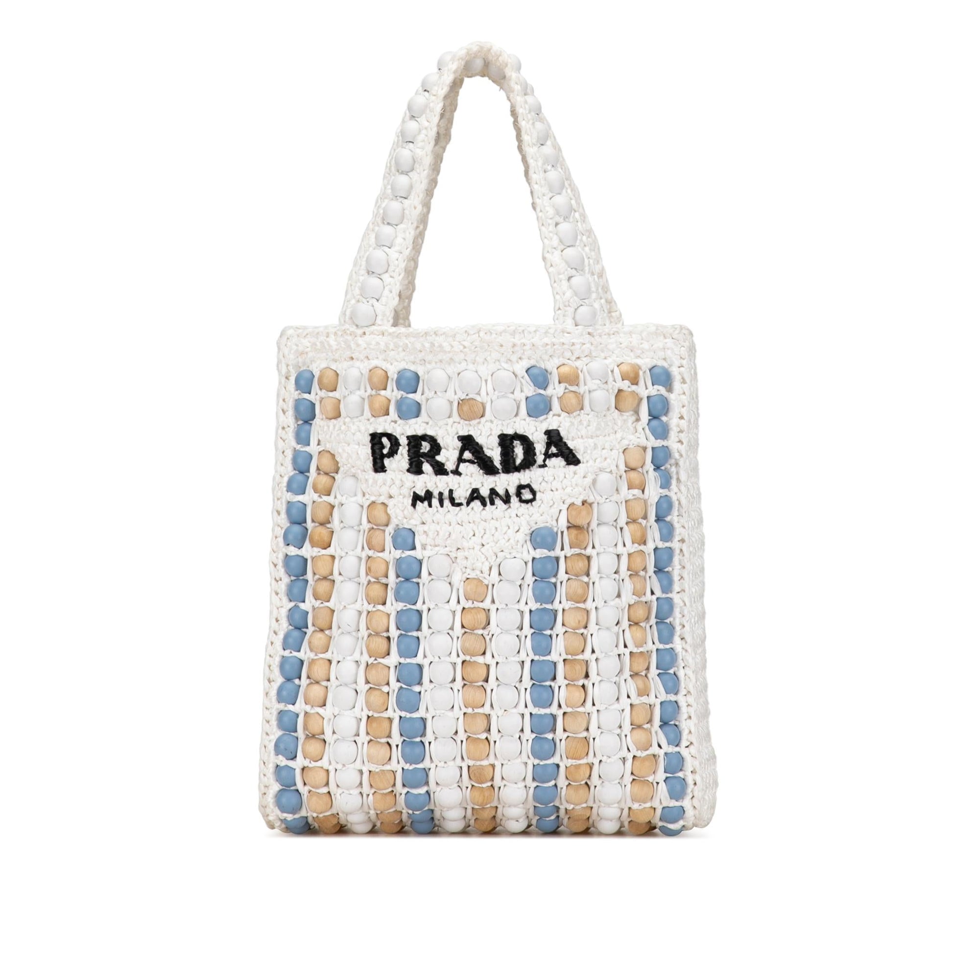 Prada Beaded Raffia Logo Tote (SHG-dzCs8E)