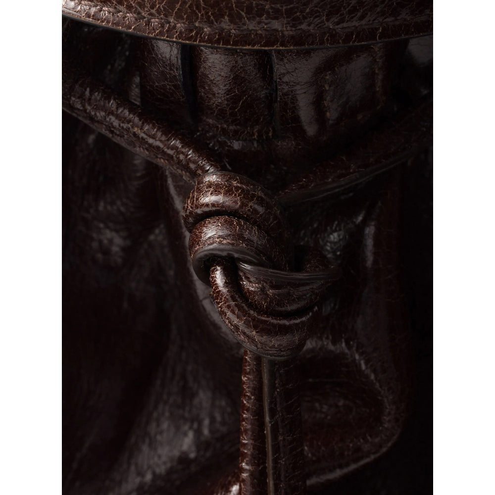 brown nappa leather patent finish enamel triangle logo two rolled top handles slip pocket to the front top zip fastening main compartment internal zip-fastening pocket silver-tone hardware