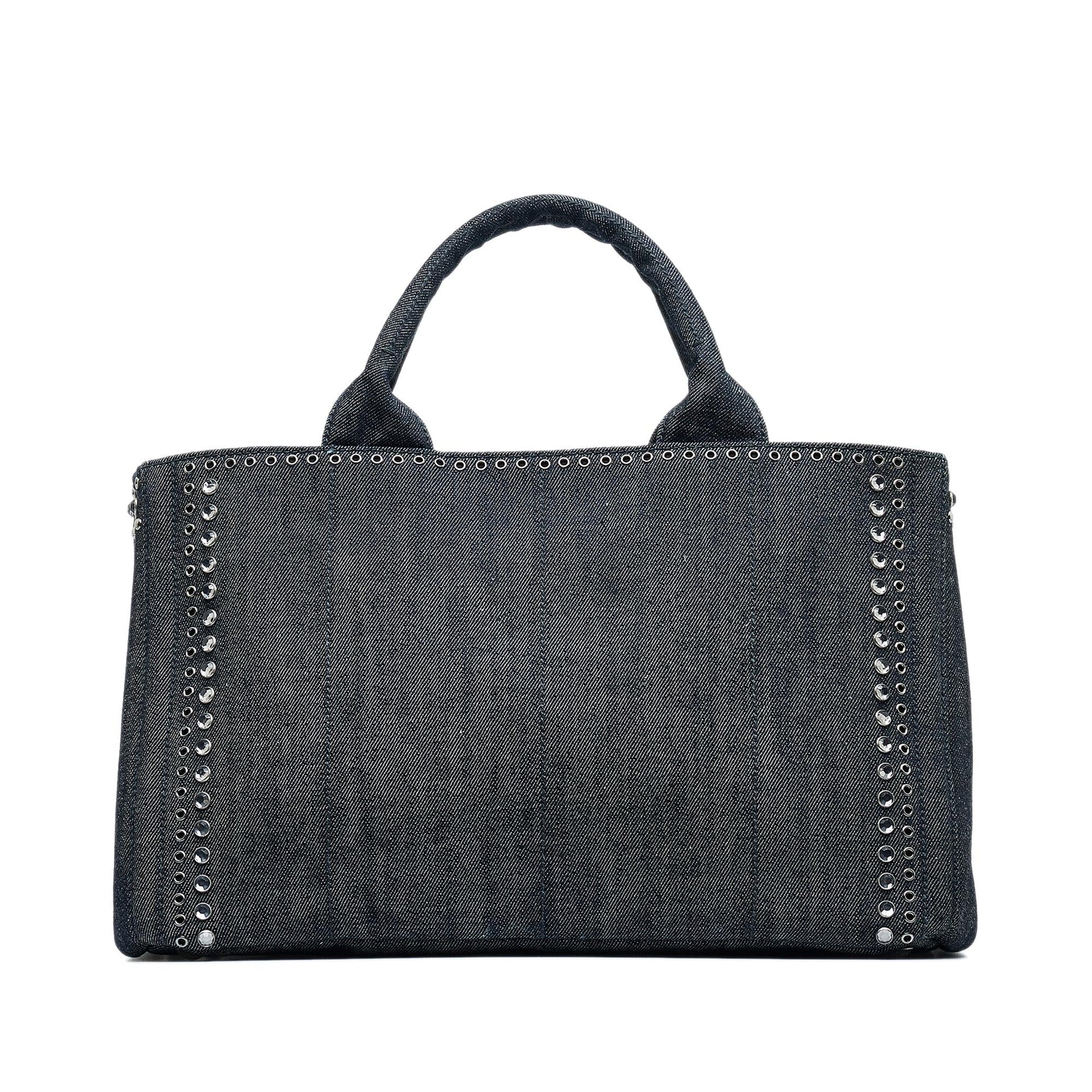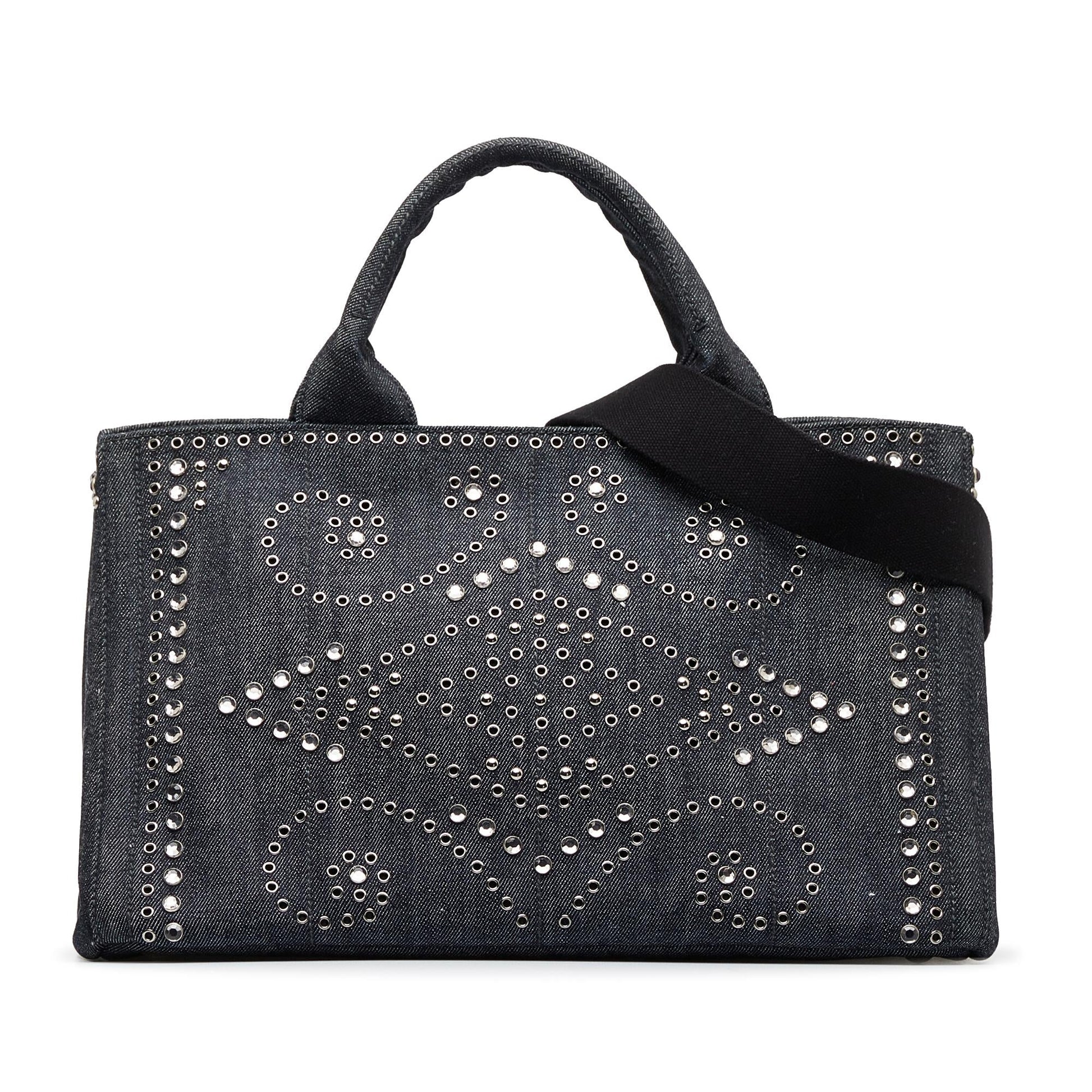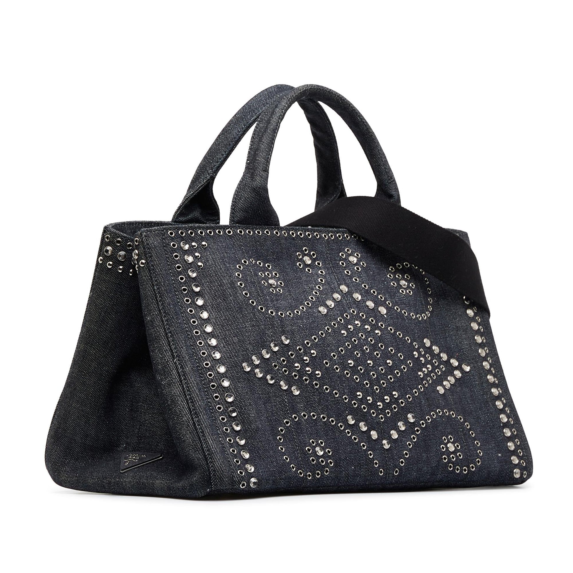 Prada Canapa Jeweled Denim Satchel (SHG-VCMwnw)