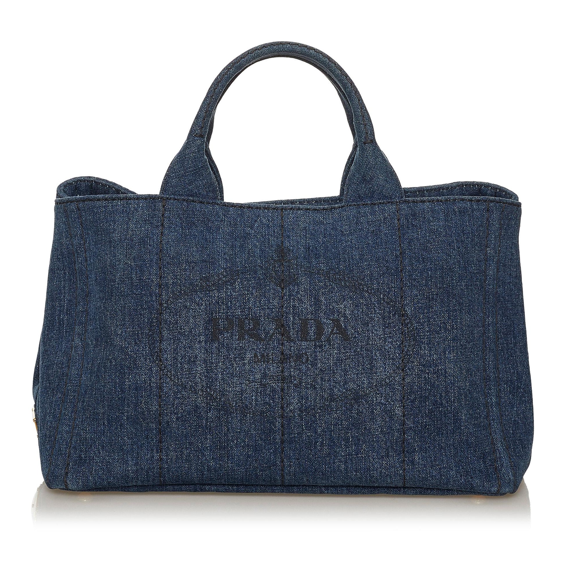 Prada Canapa Logo Denim Satchel (SHG-28405)