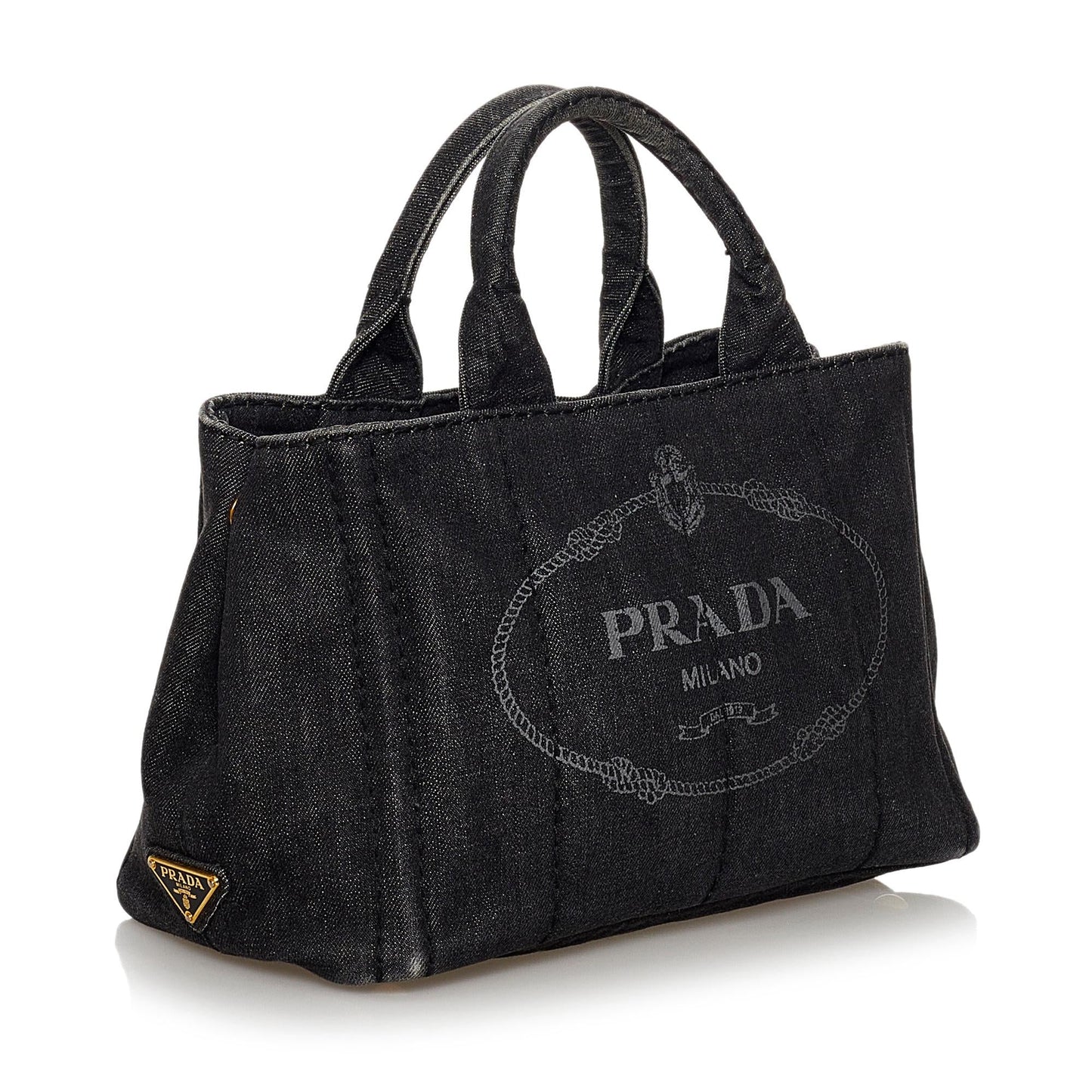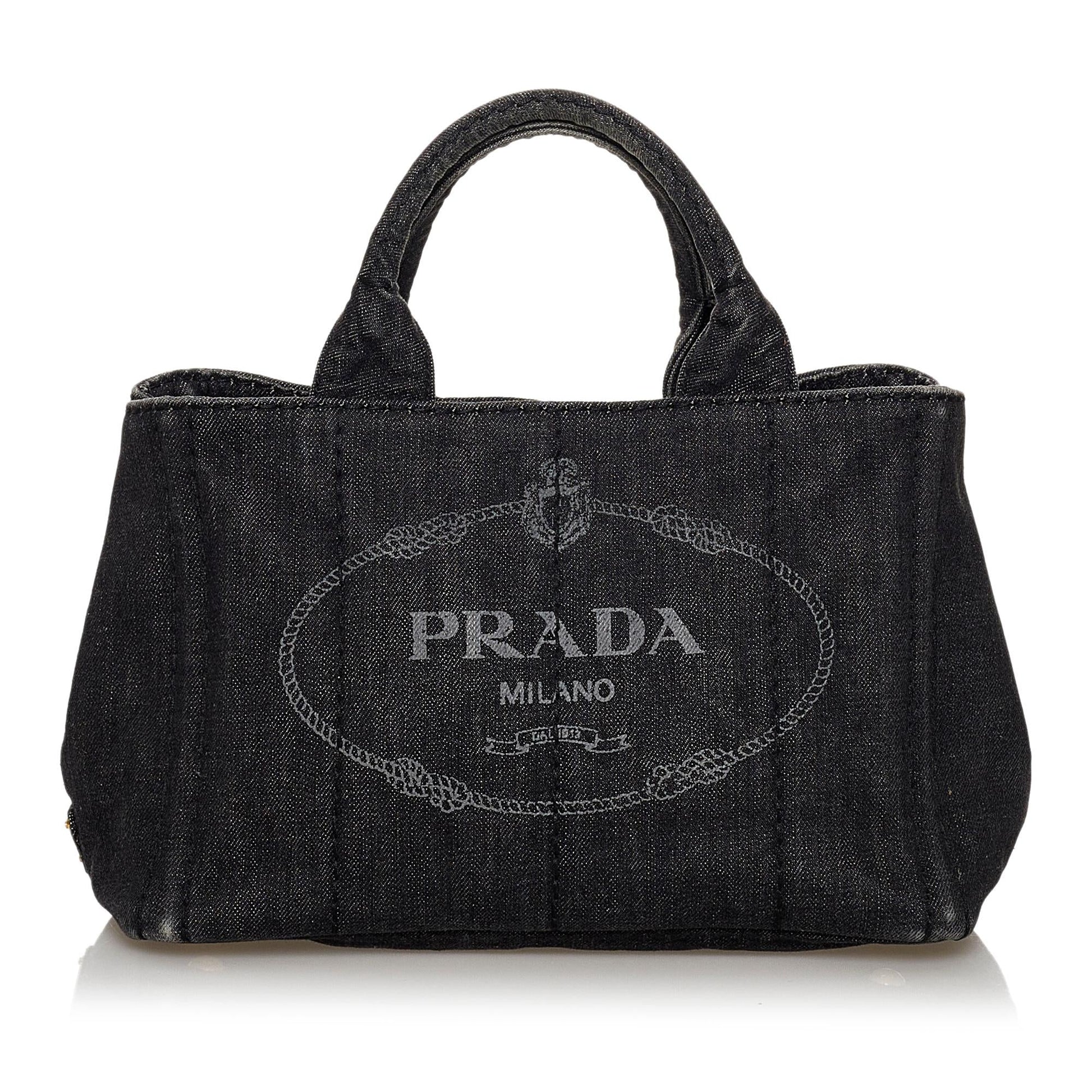 Prada Canapa Logo Denim Satchel (SHG-30089)