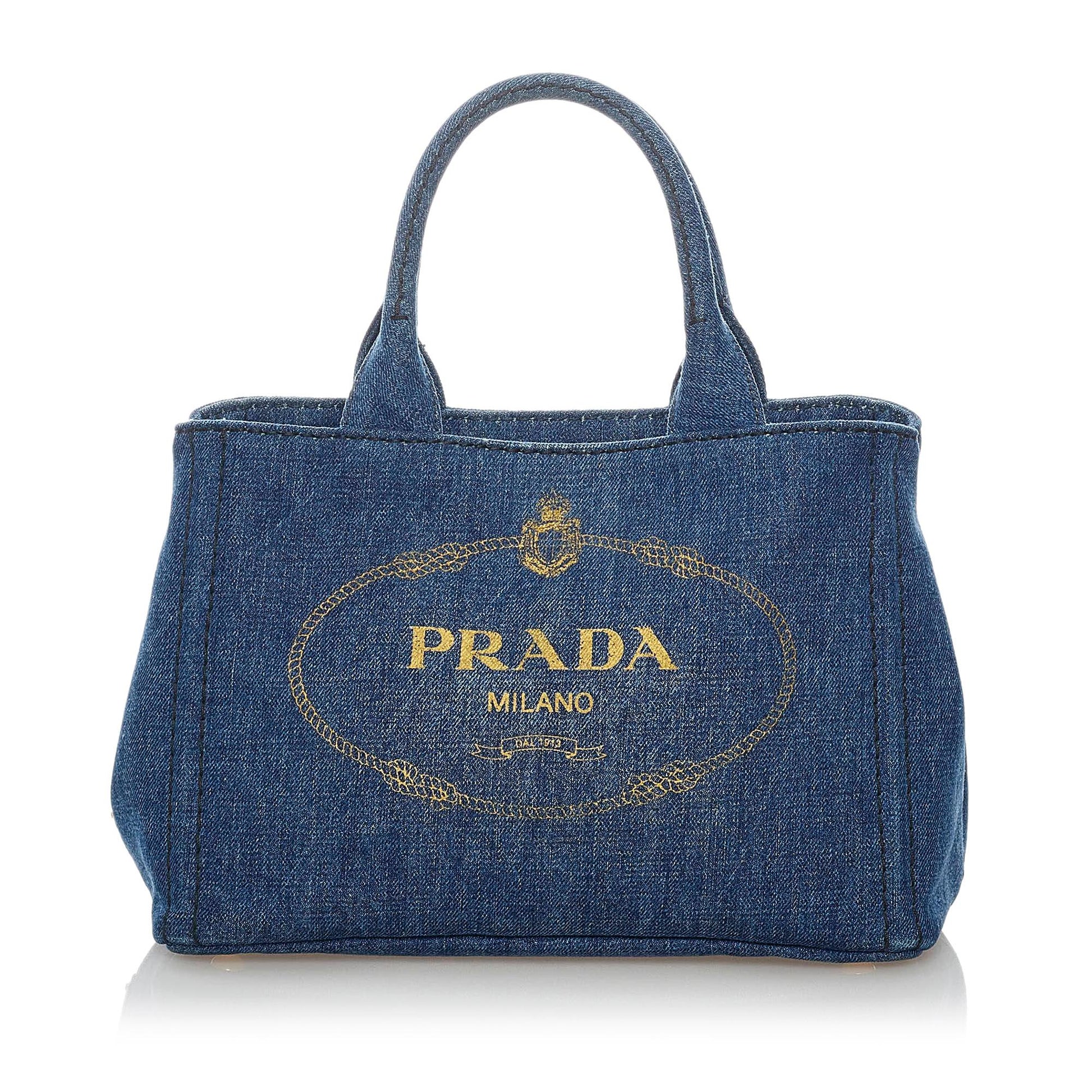 Prada Canapa Logo Denim Tote (SHG-30696)