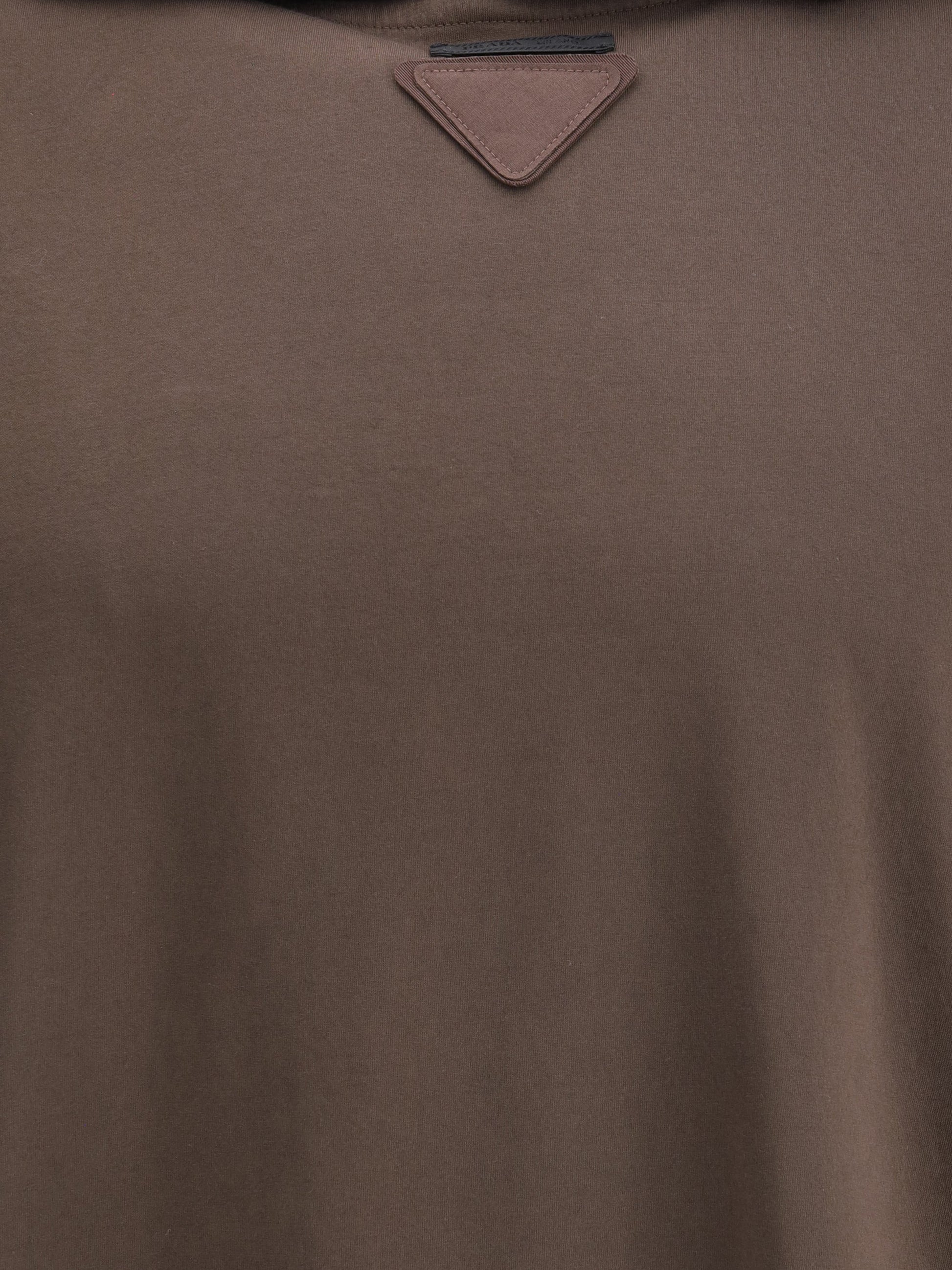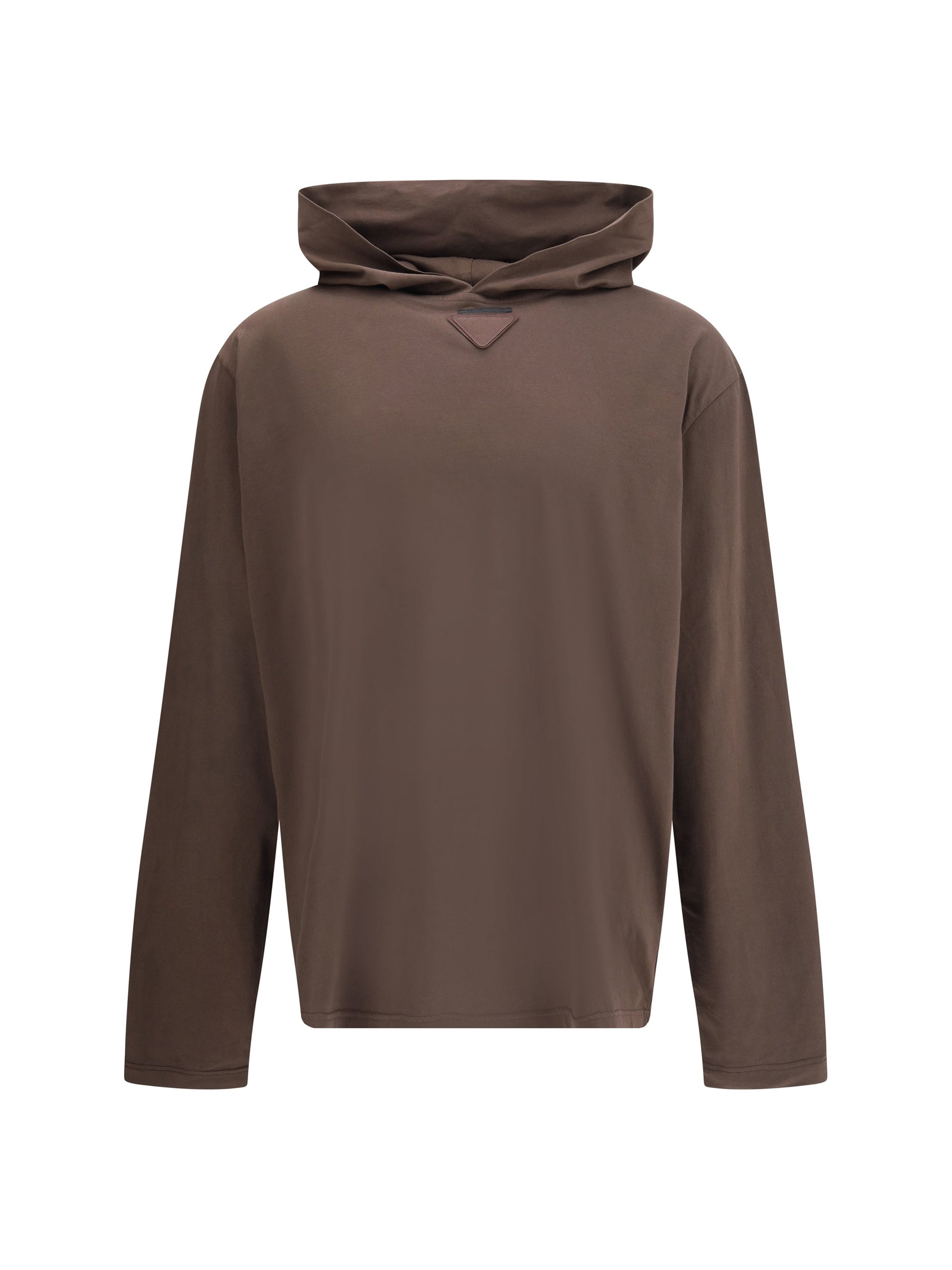 Prada's lightweight Hoodie is a garment with a modern, minimalist allure. The triangular logo patch on the front adds an iconic and recognizable detail, while the lightweight fabric ensures comfort and versatility, ideal for a casual yet sophisticated look.