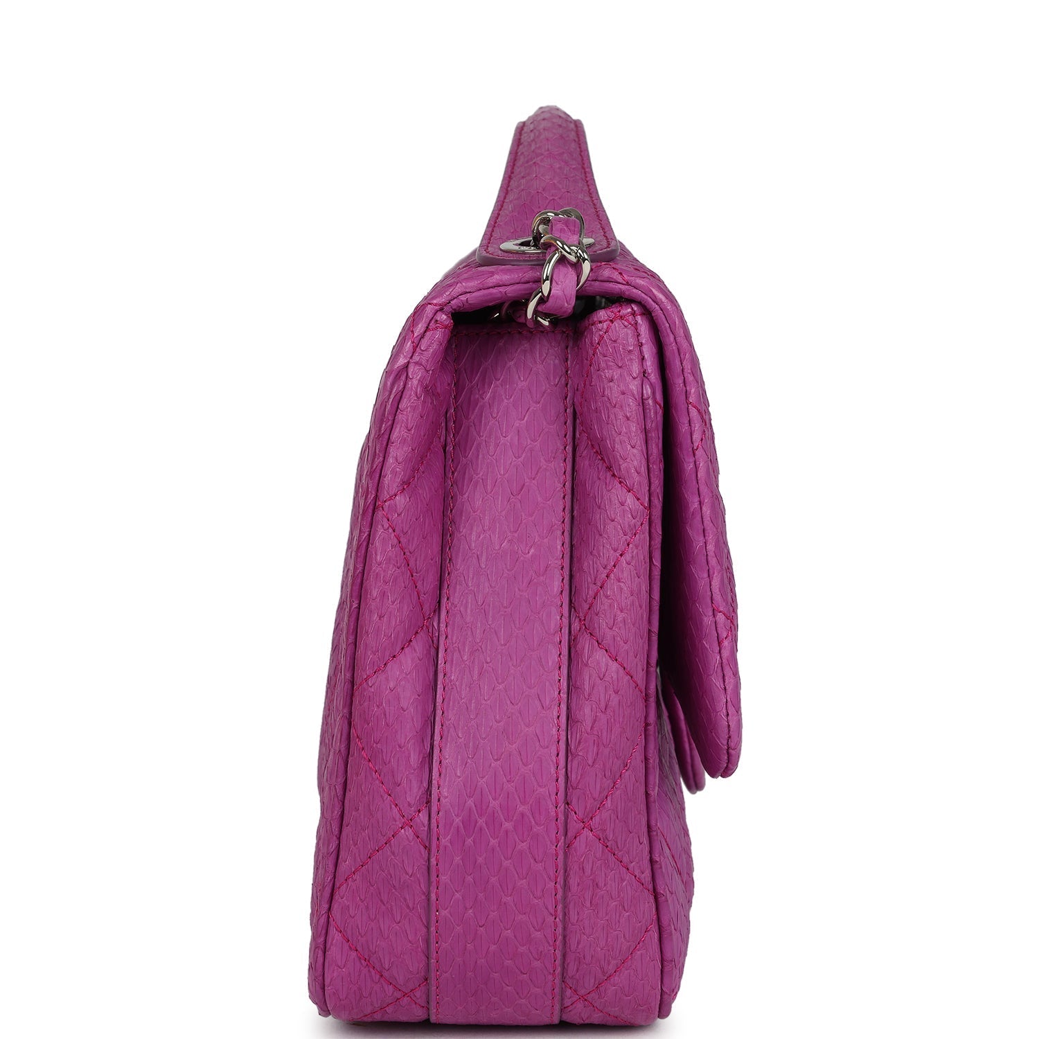 Chanel Medium Easy Carry Flap Bag Purple Python Silver Hardware