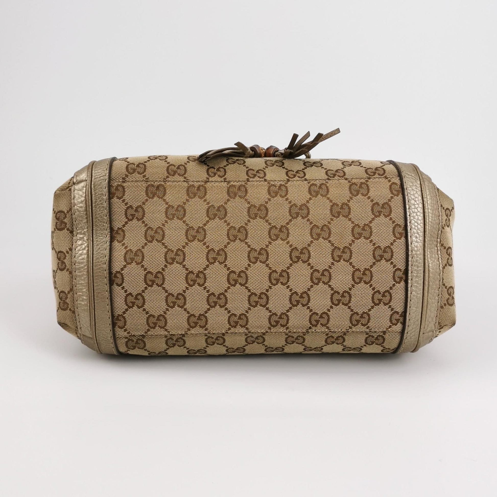 Preloved Gucci Bella Series Leather Canvas GG Monogram Woven Handle Shoulder Bag 24121378982157